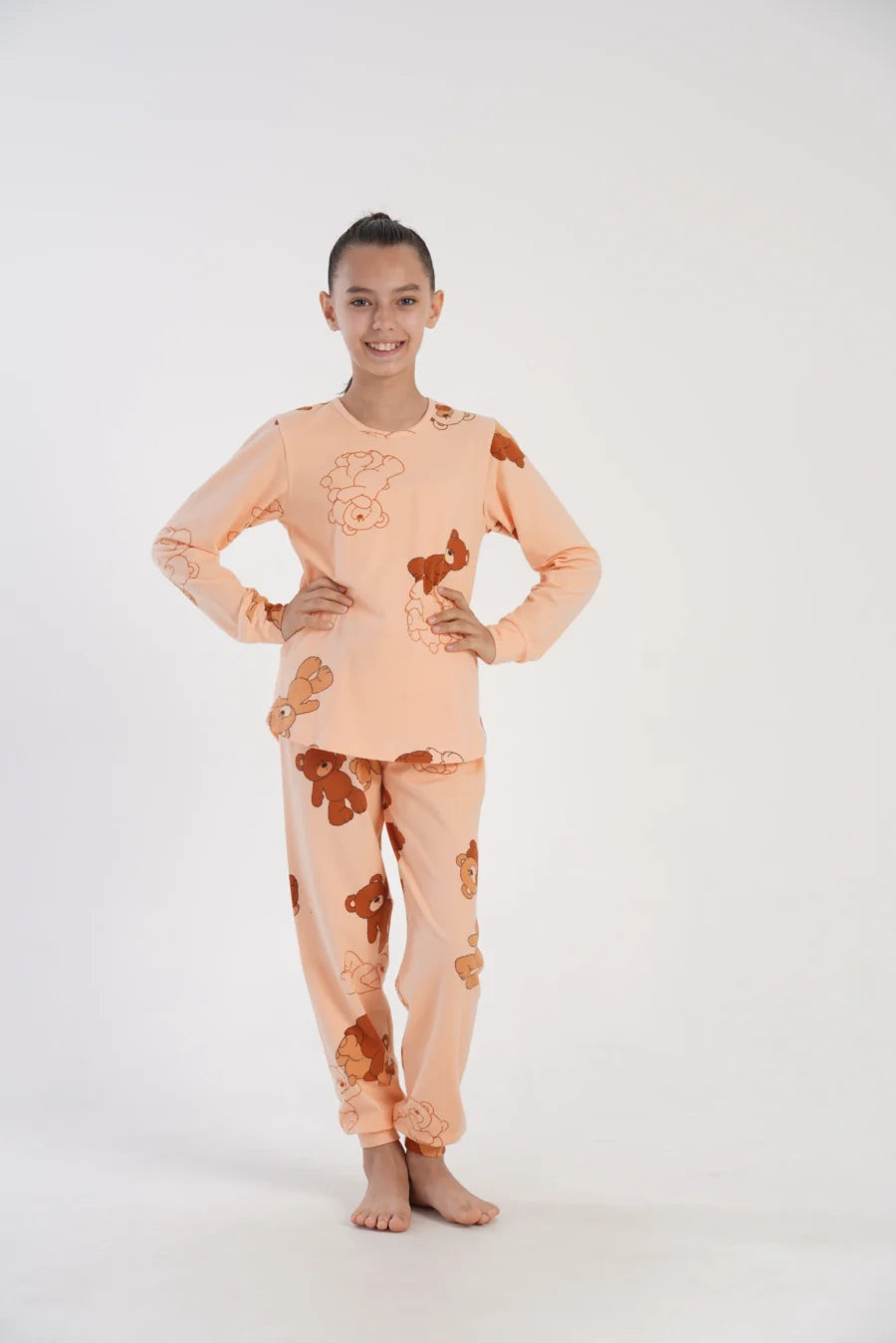 Piżama dziewczęca Vienetta Sweet Bears, Brzoskwiniowy, r. 128 - 158