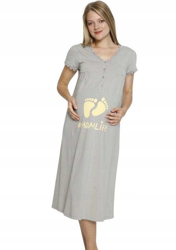 Koszula do karmienia Vienetta, Mom Life, Szara, r. M-XXL