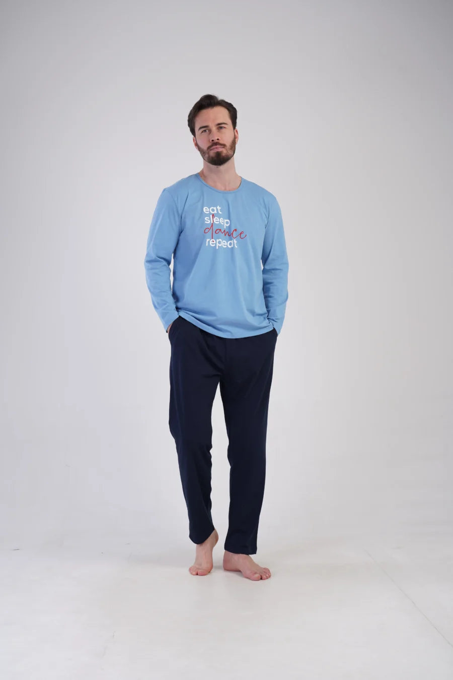 Piżama Męska Vienetta Eat Sleep Dance, Niebieski, r. S-XL