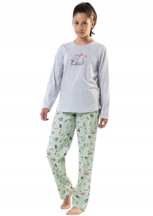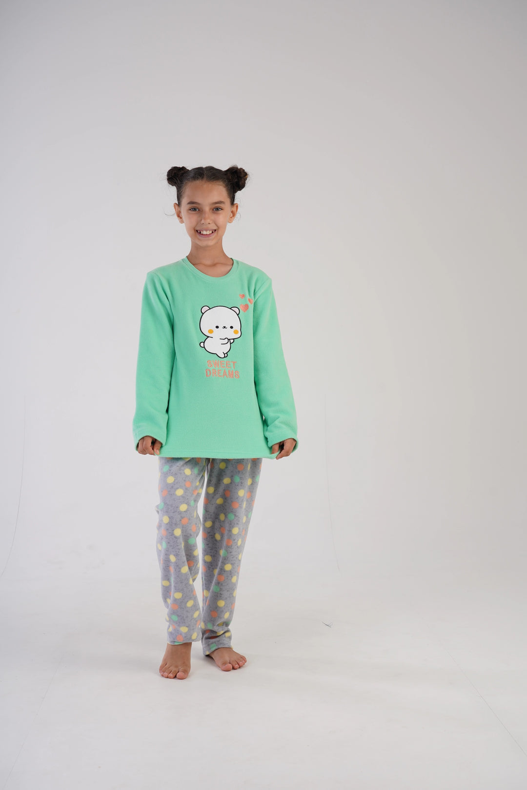 Piżama dziewczęca polarowa Vienetta Sweet Dots Green, szaro-zielona r. 134-164