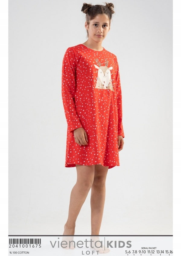 Koszula Dziewczęca Vienetta, Raindeer, Czerwona, r.116-164