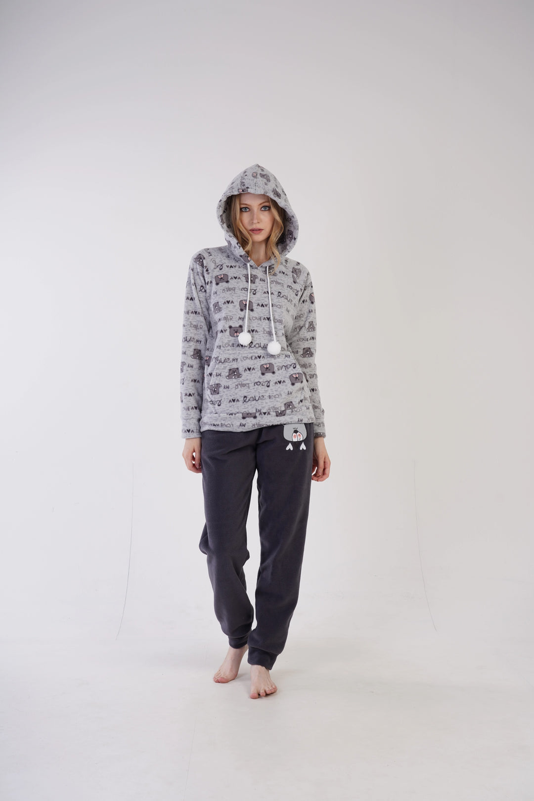 Piżama Damska Polarowa Vienetta My Love, szara, r. S-XL