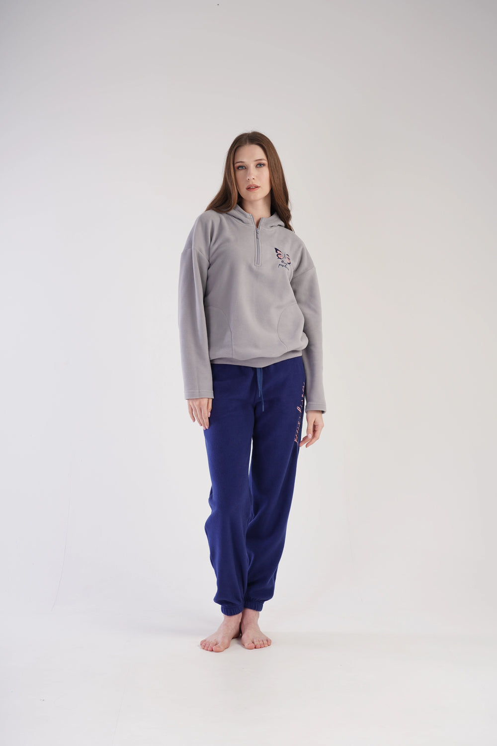 Piżama Damska Polarowa Vienetta Evergreen Elegance, szaro-granatowa, r. S-XL