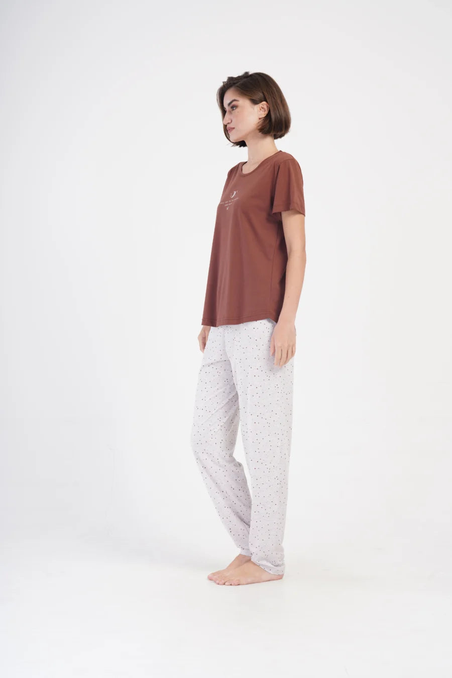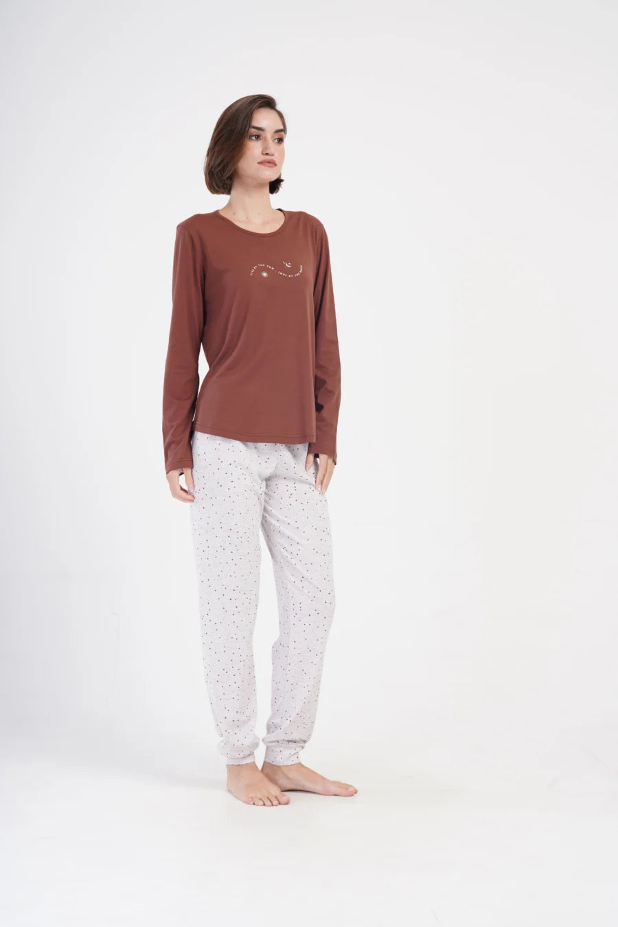 Piżama Damska Vienetta Sun and Moon, Brązowy, r. M-XXL