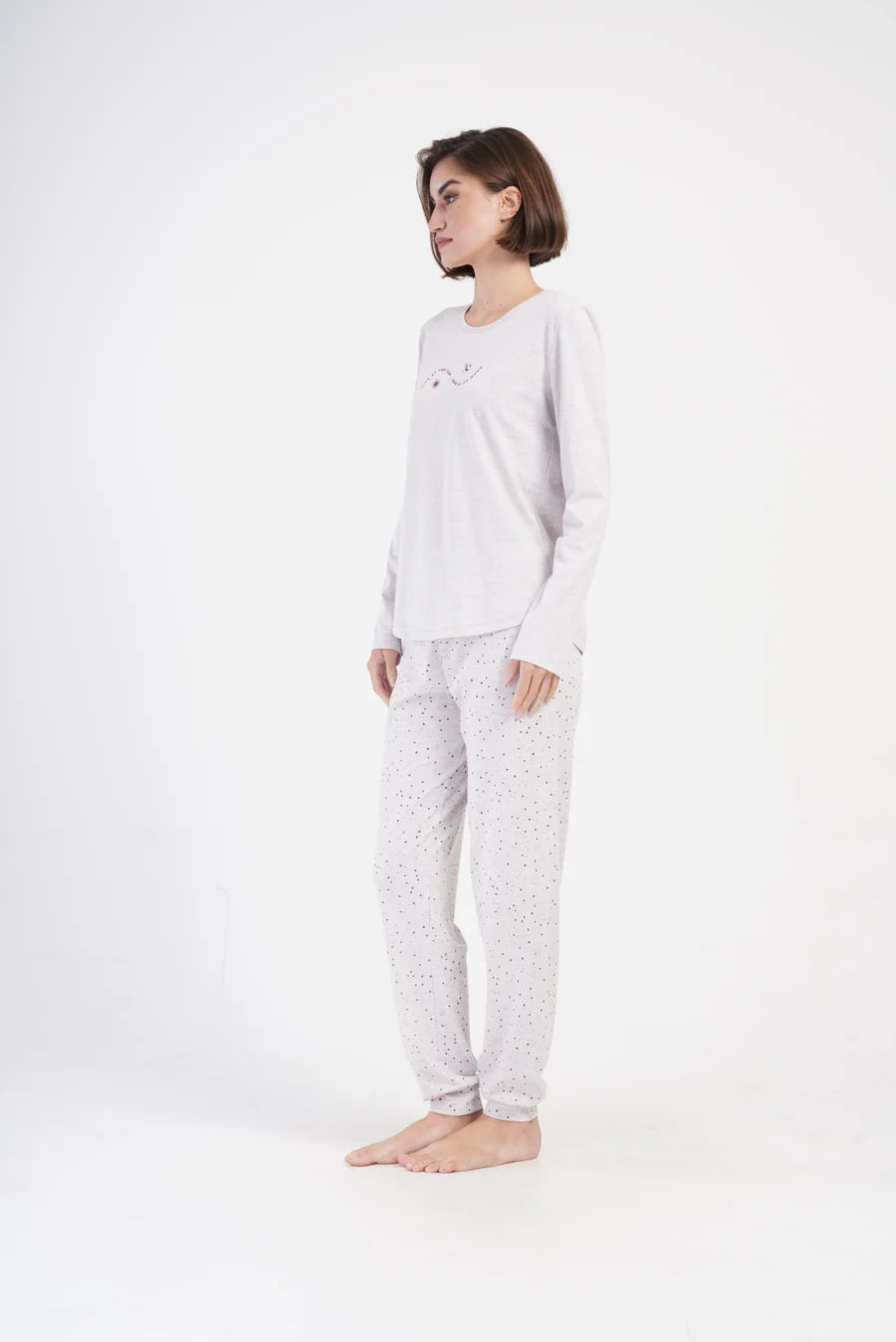 Piżama Damska Vienetta Cozy Dots, Szary, r. S-XL