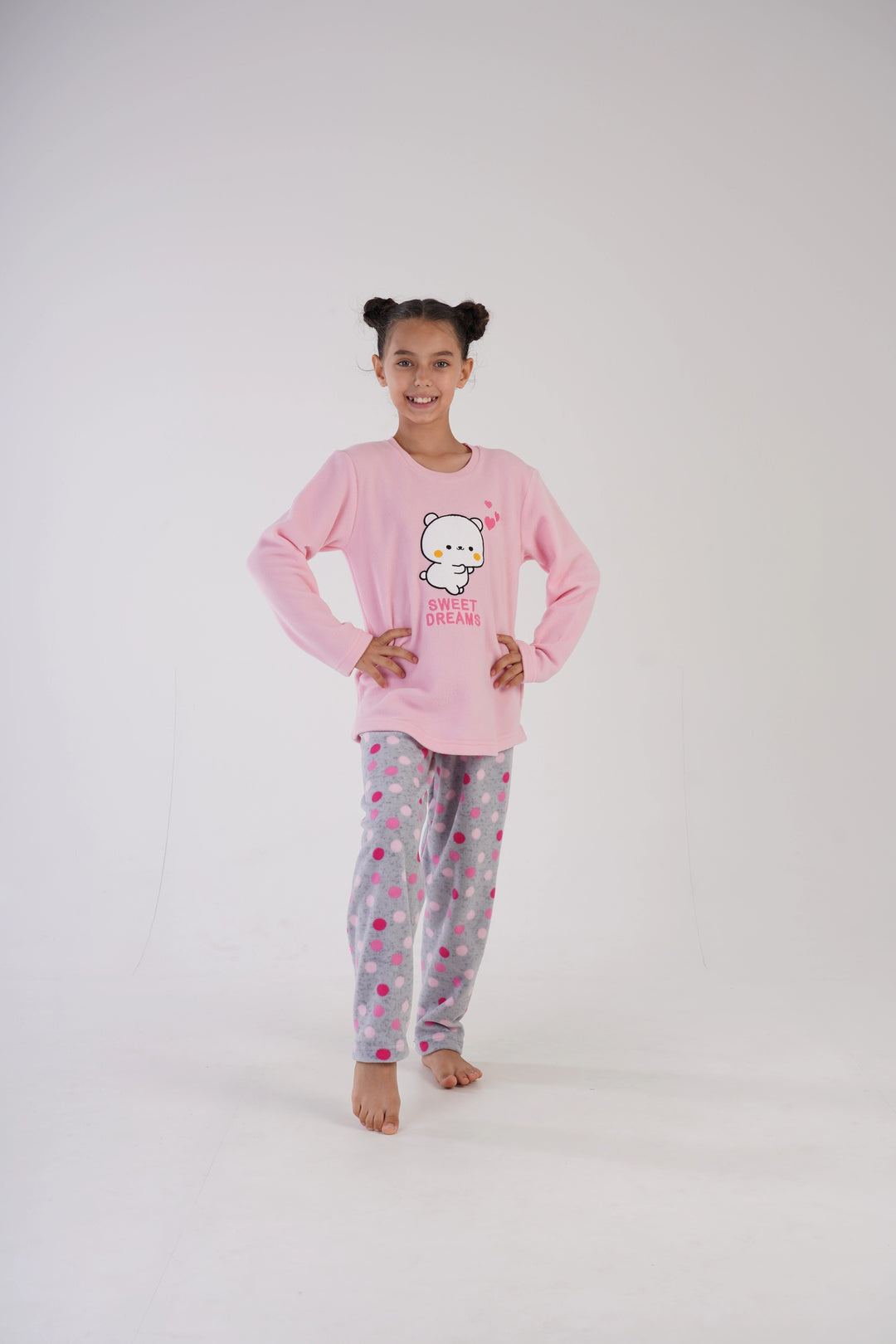 Piżama dziewczęca polarowa Vienetta Sweet Dots Pink, szaro-różowa, r. 128-158