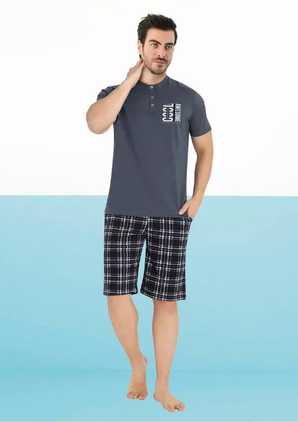 Piżama Męska Graphite Pattern, Grafitowy, r. M-XXL