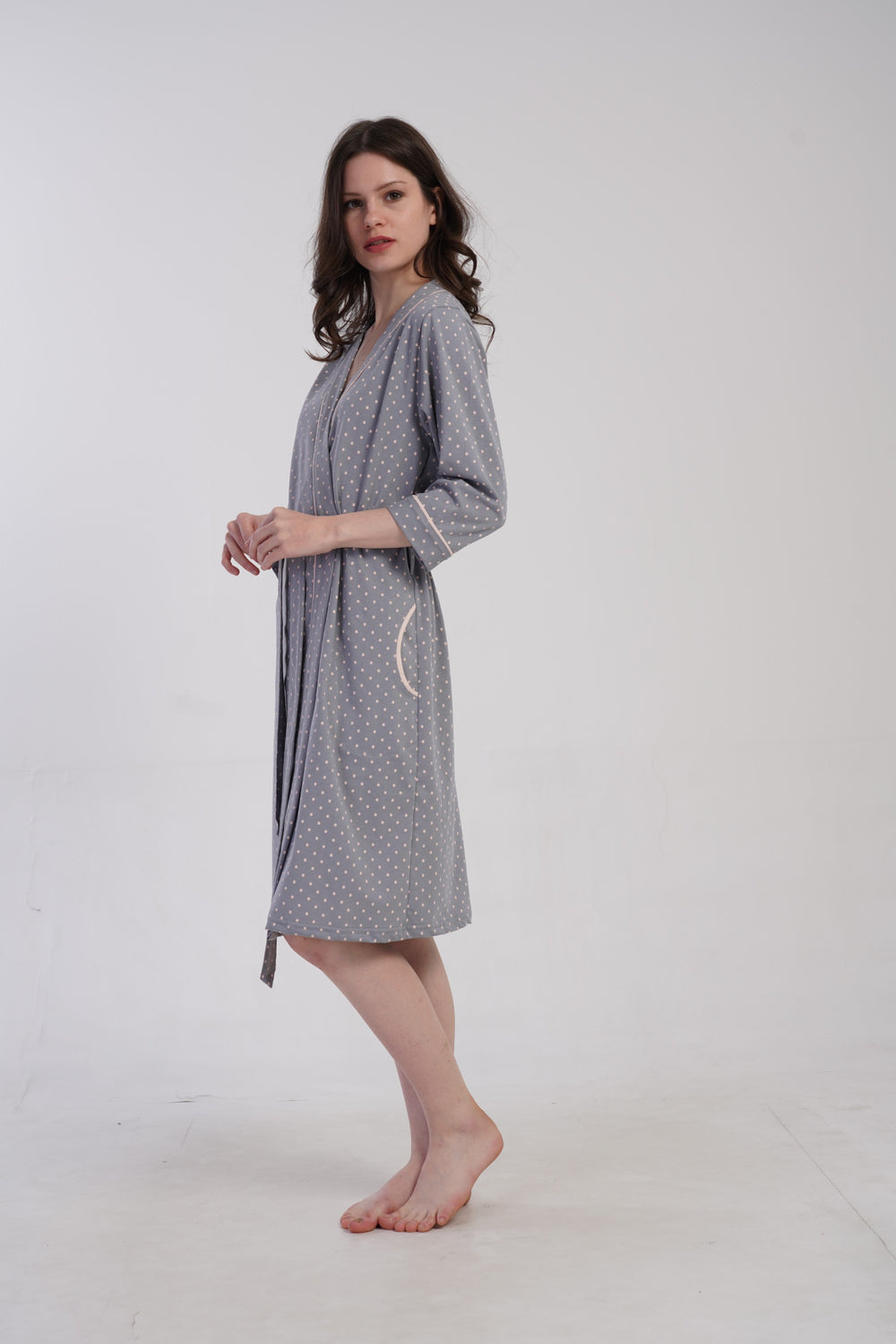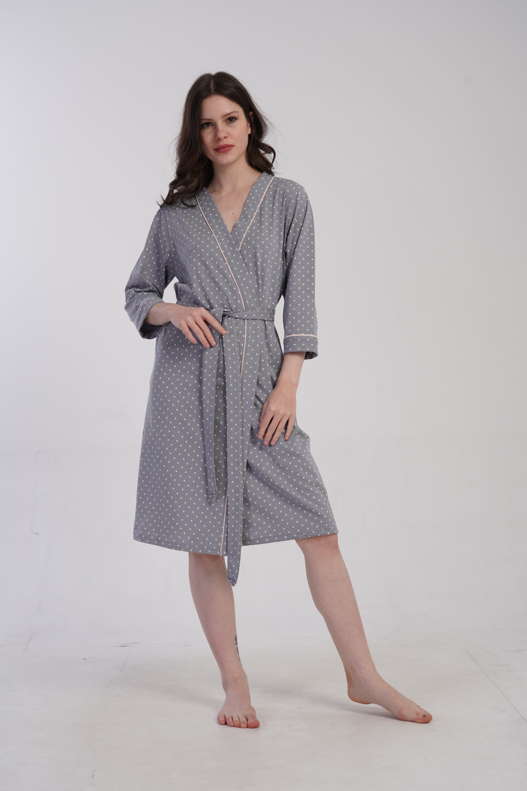 Szlafrok damski Vienetta Soft Dots, Szary, r. M-XXL