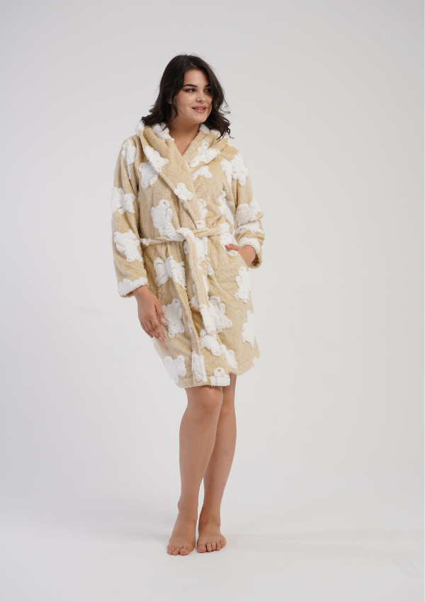 Szlafrok damski Vienetta, Cozy Bears, Beżowy, r. S-L