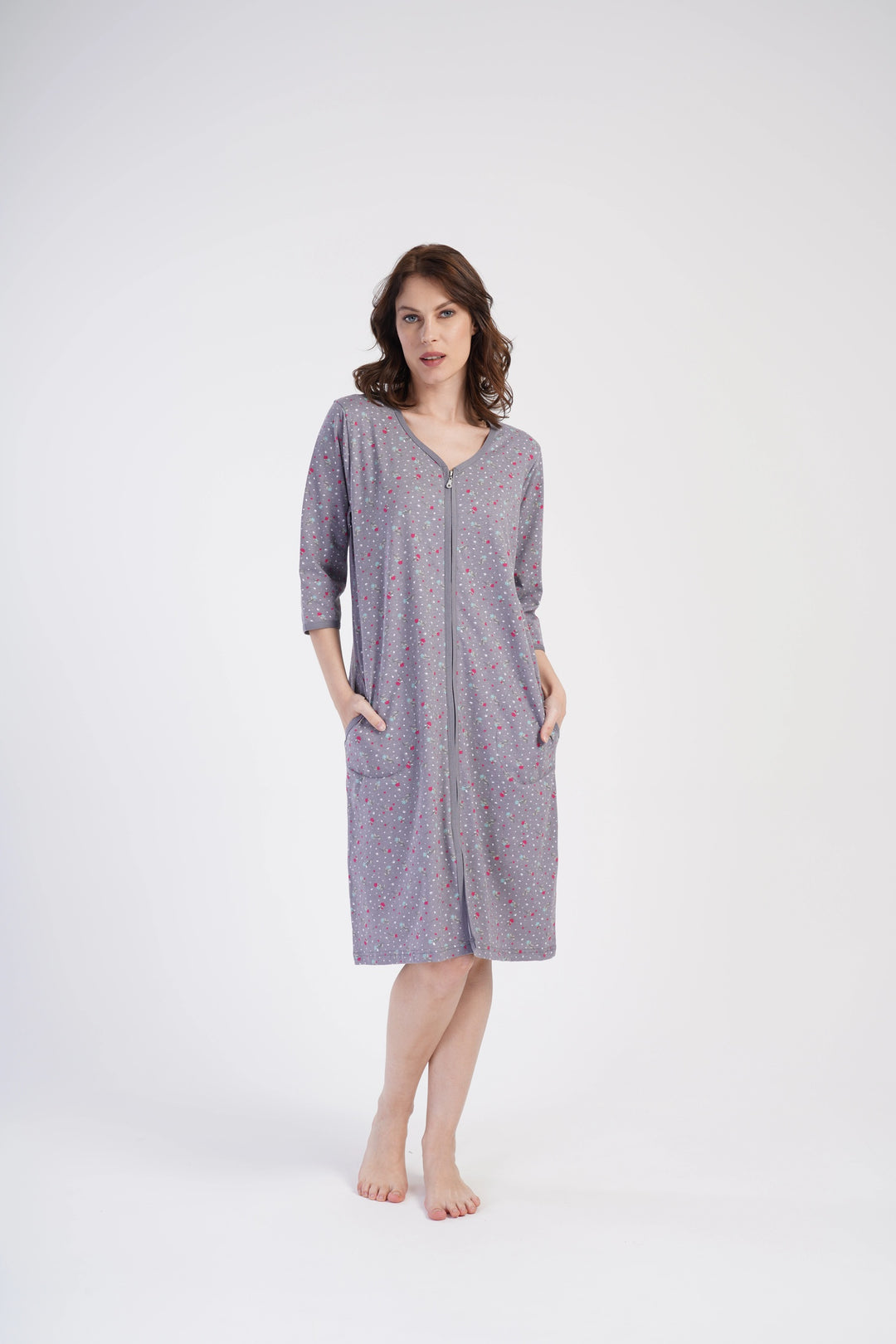 Szlafrok damski Vienetta Sweet Roses, Szary, r. M-XL