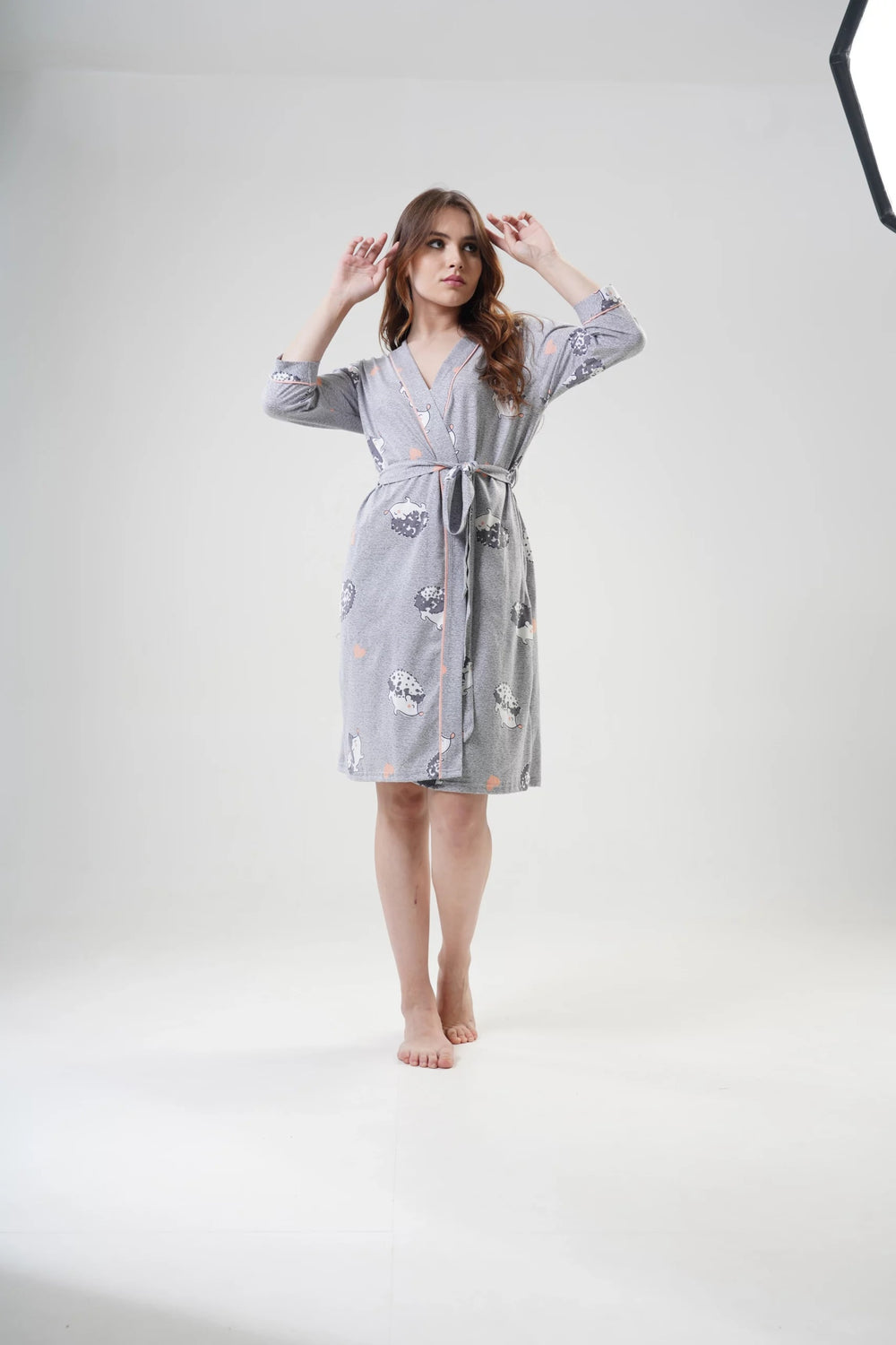 Szlafrok damski Vienetta Sweet Hedgehog, Szary, r. S-XL