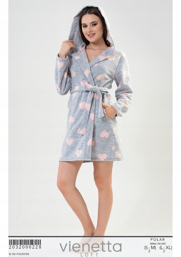Szlafrok damski polarowy Vienetta, Hearts Comfort, Szary, r. S-XL