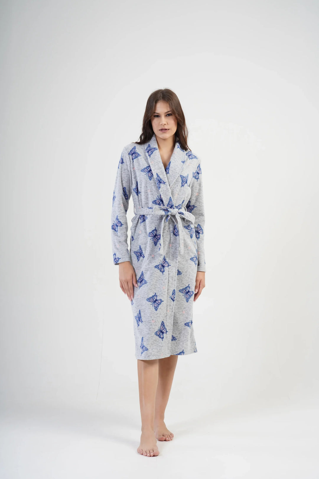 Szlafrok damski polarowy Vienetta, Butterfly Long, Szary, r. S-XL
