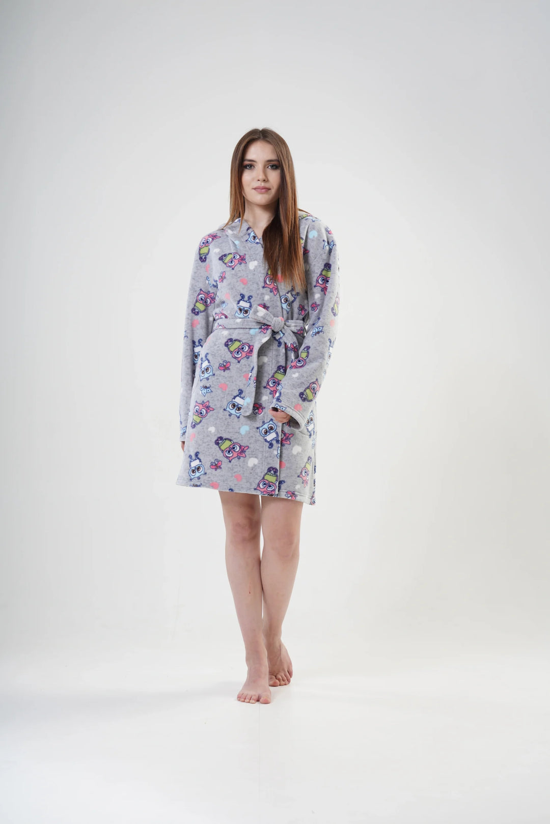 Szlafrok damski Vienetta Happy Hoodie, Szary, r. S-XL