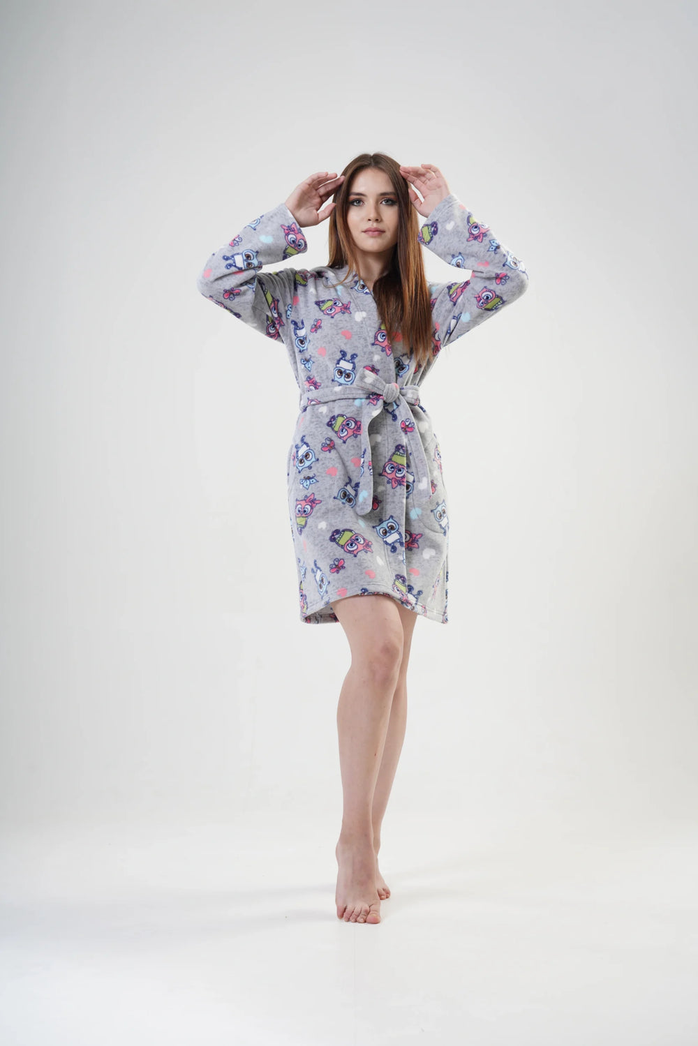 Szlafrok damski polarowy Vienetta, Hedgehog Robe, Szary, r. S-XL