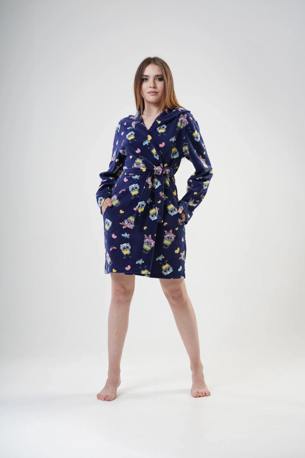 Szlafrok damski Vienetta Happy Hoodie, Granatowy, r. S-XL