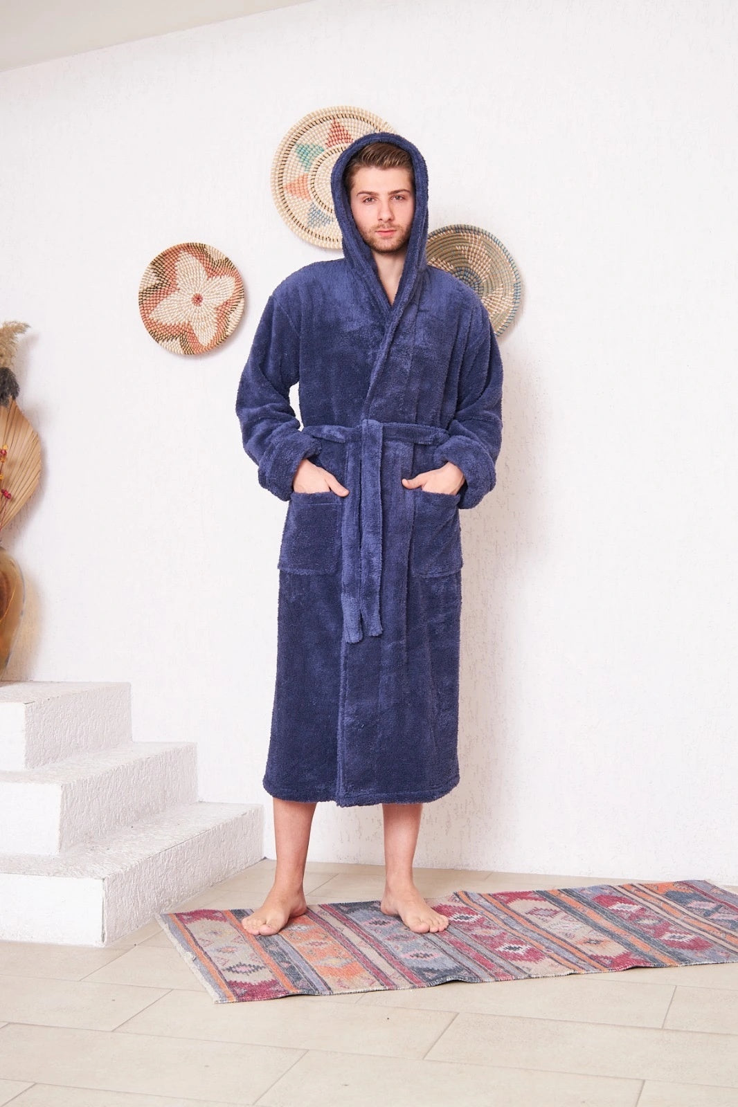 Szlafrok męski softowy Vienetta Grid Please, granatowy, r. M-XXL
