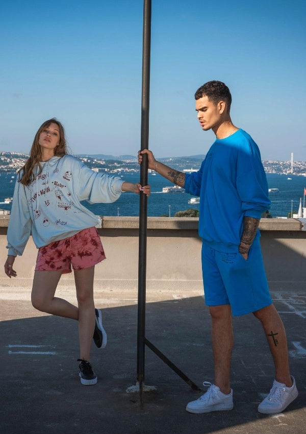 Komplet dresowy idealnie dopasowuje się do sylwetki dzięki krojowi typu oversize. Materiał z którego został wykonany jest delikatny i nie podrażnia skóry. Jego uniwersalny i elegancki wzór przypadnie do gustu każdego. Idealnie nadaje się do noszenia na codzień i do ćwiczeń. Bardzo wygodny i komfortowy w użytkowaniu.
