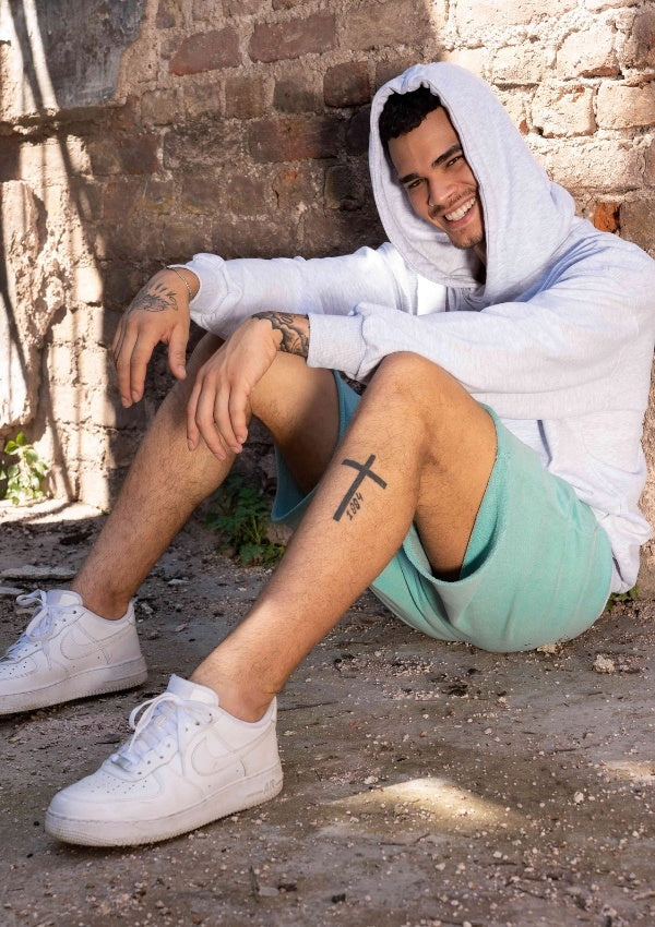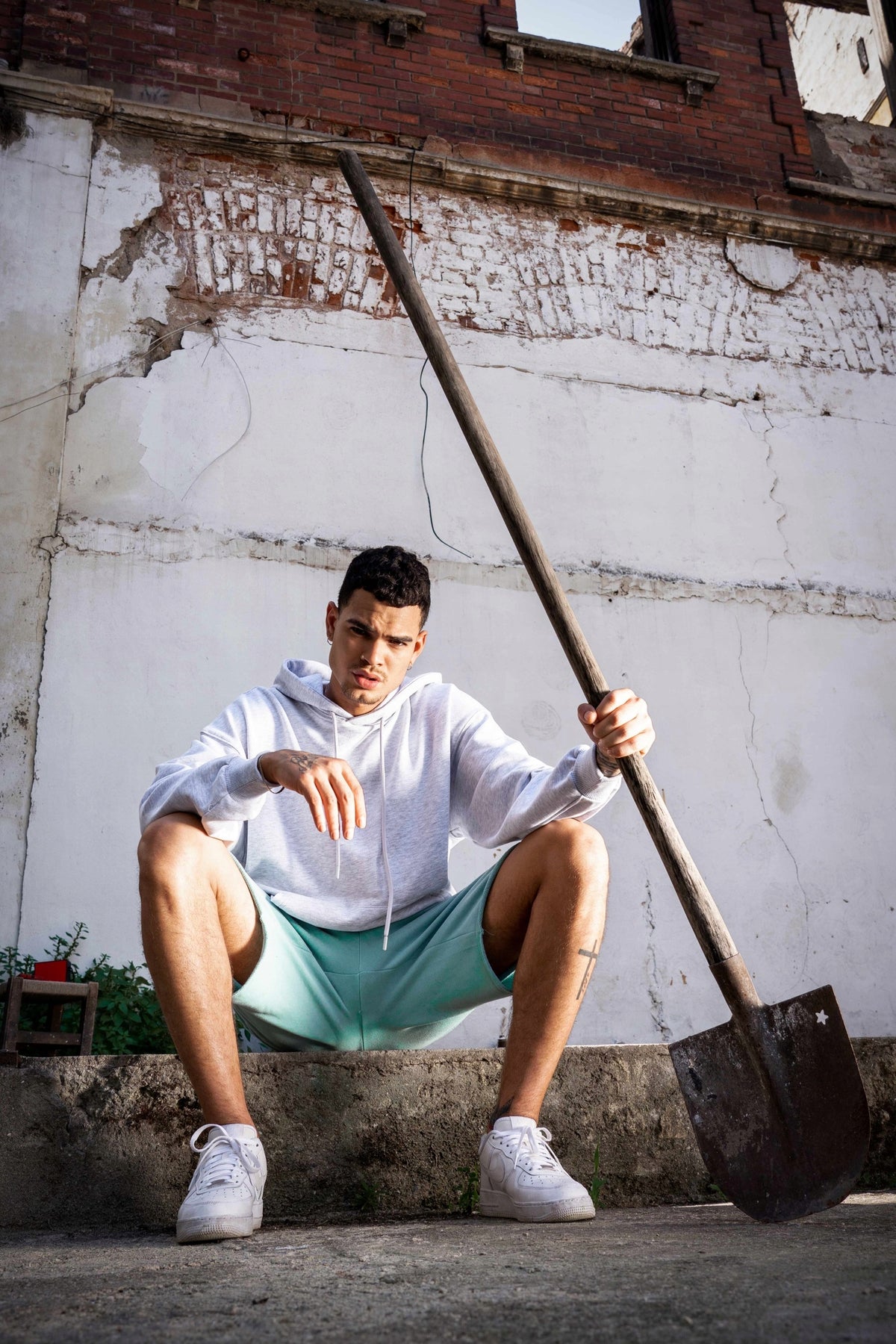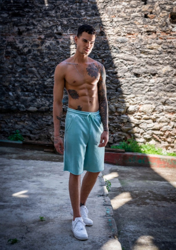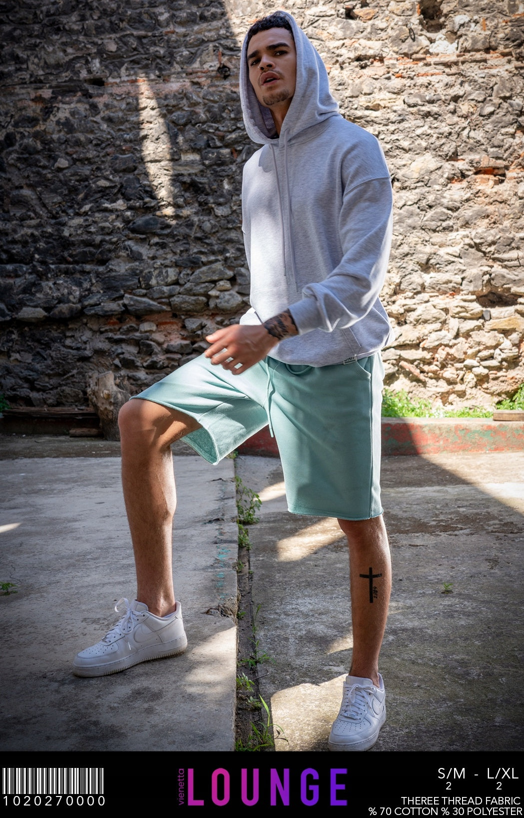 KOLOR: Bluza: szary melanż, szorty: miętowy