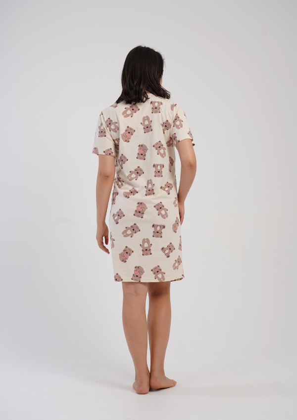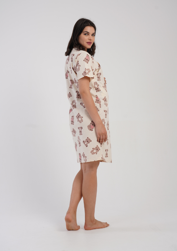 Koszula ma luźny, prosty krój, który zapewnia pełną swobodę ruchów oraz wygodę podczas snu i karmienia. Uroczy nadruk w misie i króliczki w pastelowych odcieniach nadaje jej delikatnego, dziewczęcego uroku. To doskonały wybór zarówno na noc, jak i do relaksu w domowym zaciszu.