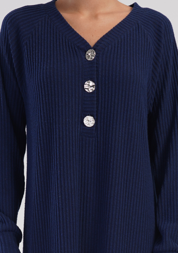 Dekolt w kształcie litery V ozdobiony trzema dekoracyjnymi guzikami subtelnie przyciąga wzrok i podkreśla kobiecość. Długie rękawy zapewniają ciepło bez efektu przegrzania, a swobodny fason gwarantuje wygodę przez całą noc.