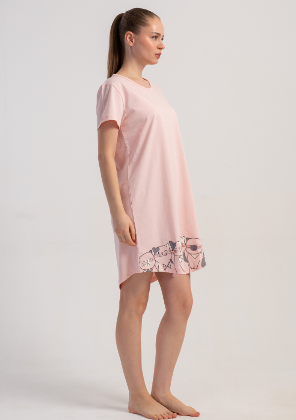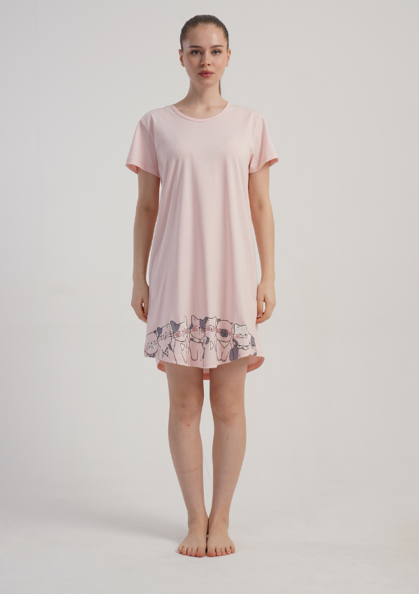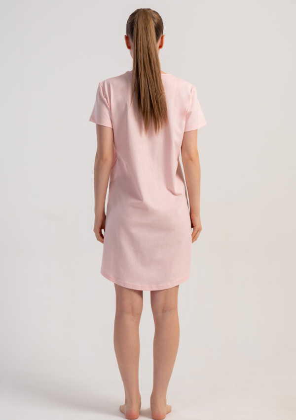 Damska koszula nocna z krótkim rękawem to idealna propozycja na komfortowy sen i domowy relaks. Luźny fason oraz miękka dzianina zapewniają wygodę i swobodę ruchów.