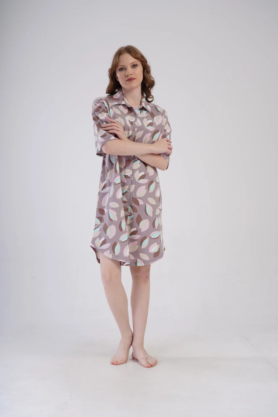 Postaw na komfort i elegancję z koszulą nocną w modnym, koszulowym fasonie. Ten model z krótkim rękawem i klasycznym kołnierzykiem to propozycja, która sprawdzi się nie tylko podczas snu, ale również jako wygodny strój domowy.