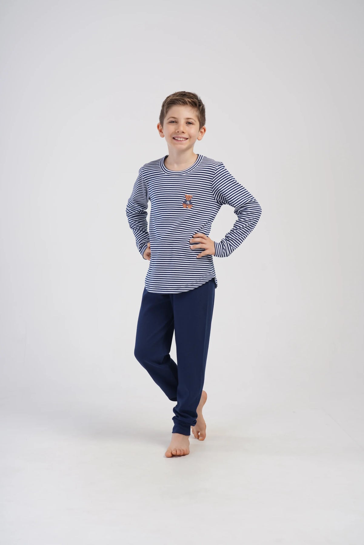 Piżama chłopięca Vienetta Bear Stripes, Granatowy, r. 128-158