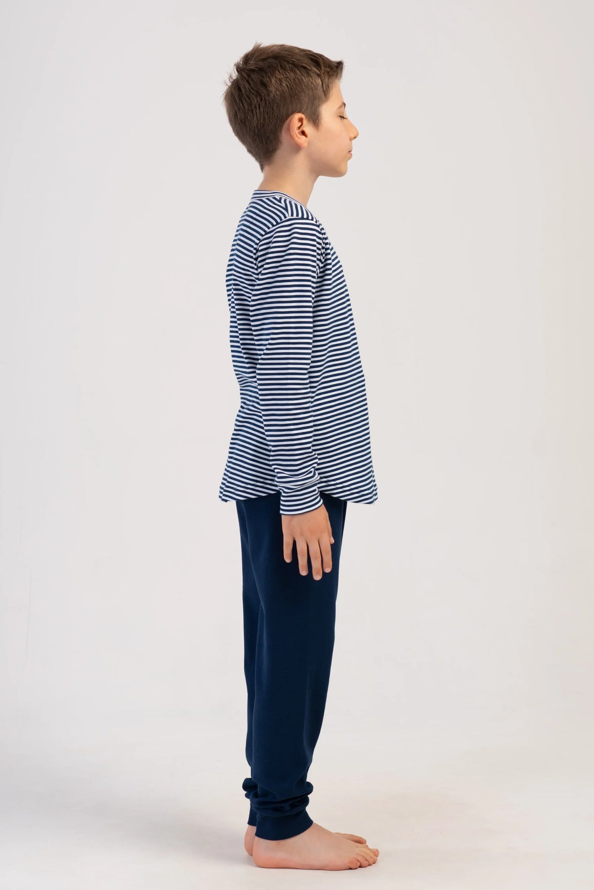 Wygodna i miękka piżama chłopięca wykonana z wysokiej jakości bawełny typu interlock, doskonałej na każdą porę roku. Materiał jest elastyczny, podwójnie dziany, wyjątkowo przyjemny dla skóry oraz idealnie sprawdza się podczas snu i domowego odpoczynku.