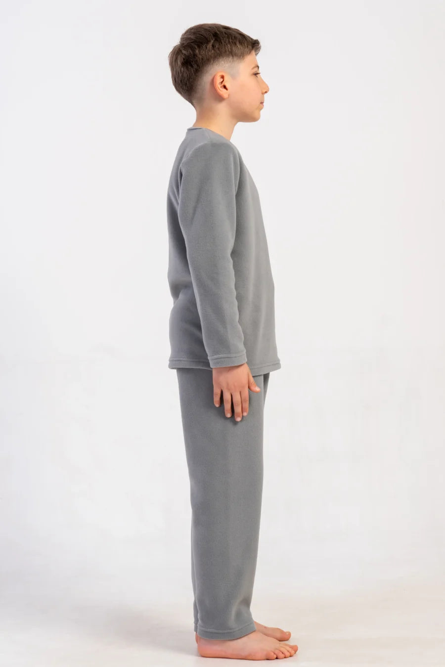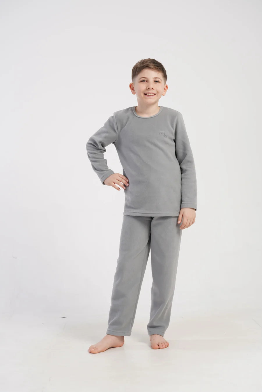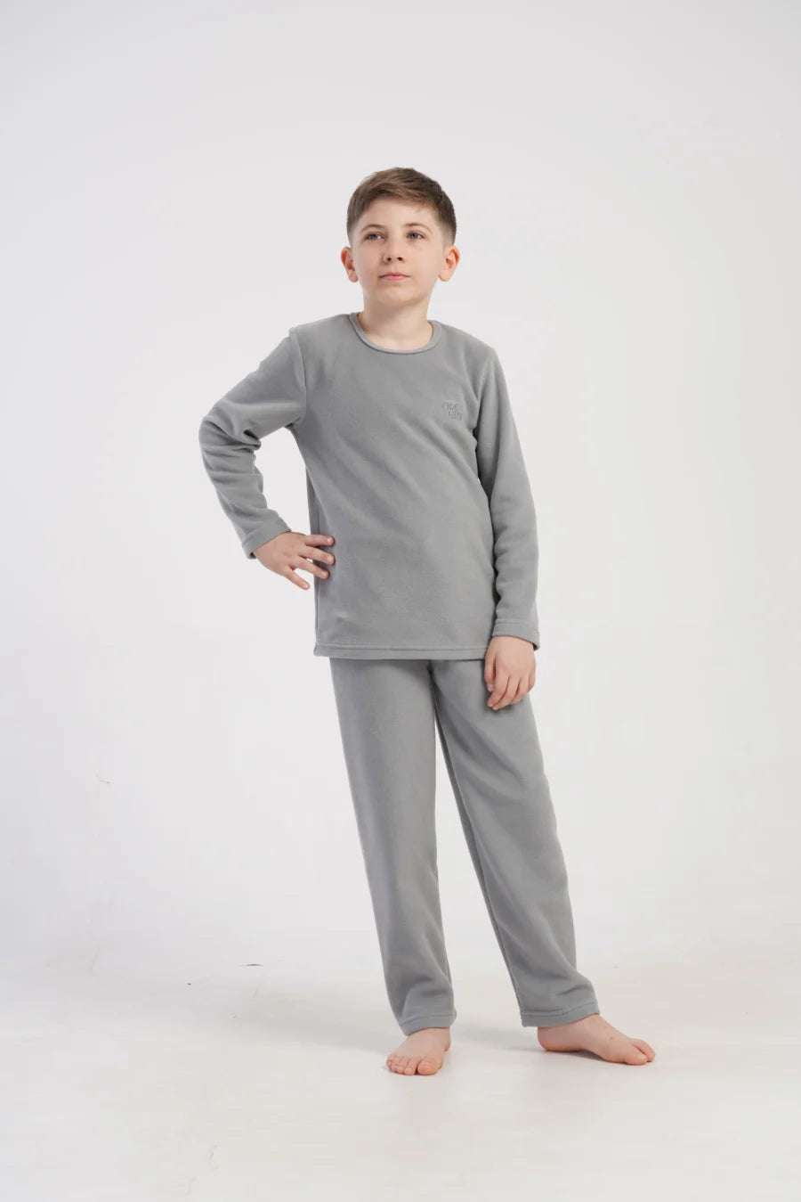 Piżama składa się z długiego rękawa i długich spodni, uszyta została z wysokiej jakości polaru, który jest lekki, ale doskonale izoluje od zimna. Klasyczny, stonowany szary kolor nadaje zestawowi eleganckiego i minimalistycznego wyglądu, dzięki czemu będzie świetnie wyglądał zarówno jako piżama, jak i domowy dres na leniwe wieczory.