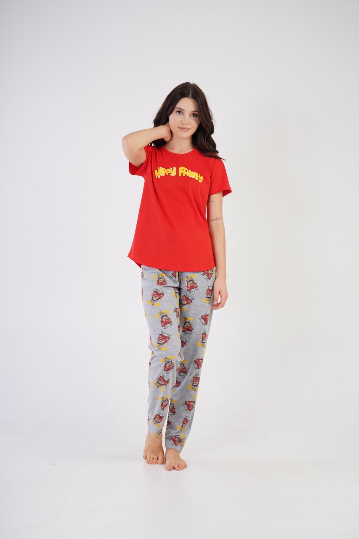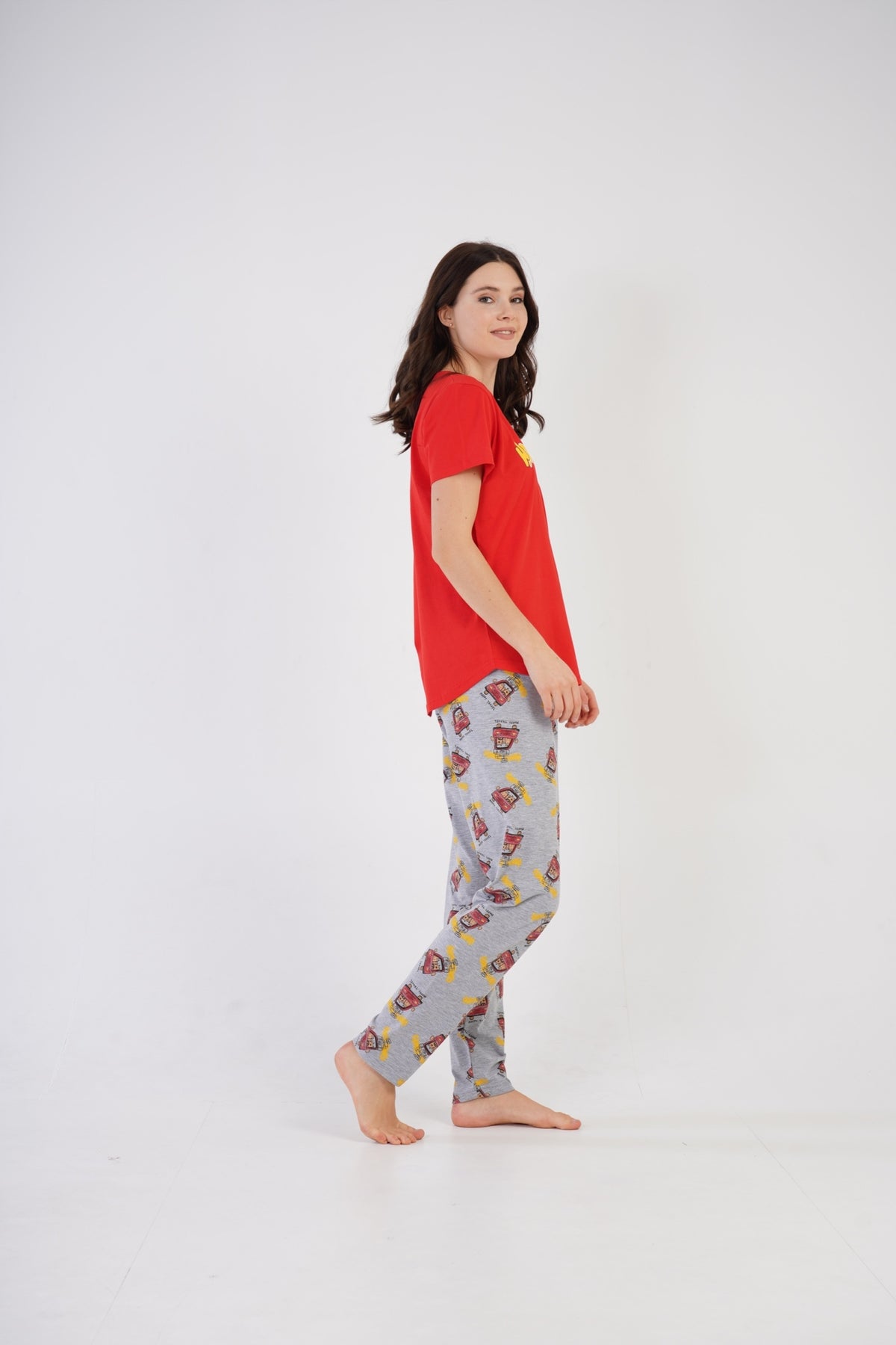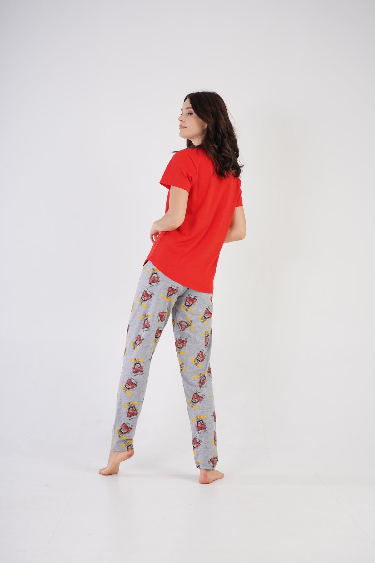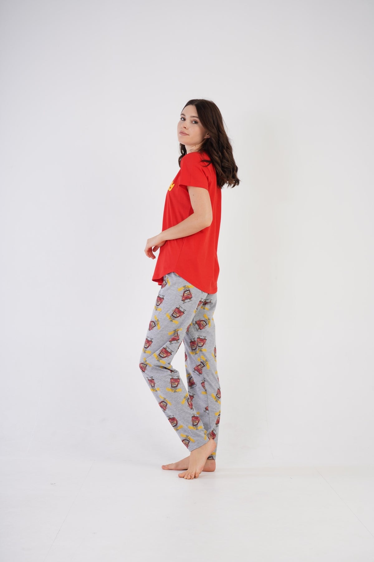 KOLOR: Bluzka: Czerwona, Spodnie: SzareSKŁAD MATERIAŁU: Bluzka: 100% Bawełna, Spodnie: 70% Bawełna 30% Poliester