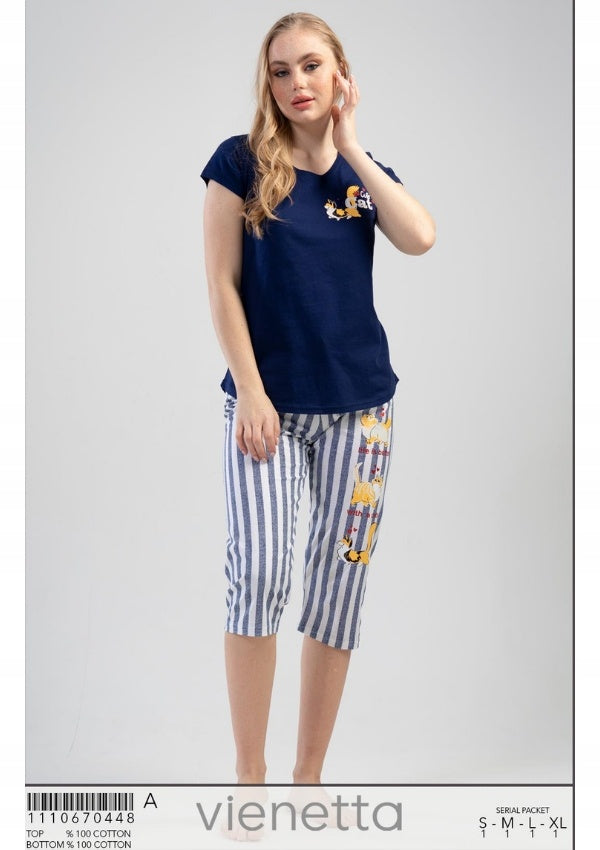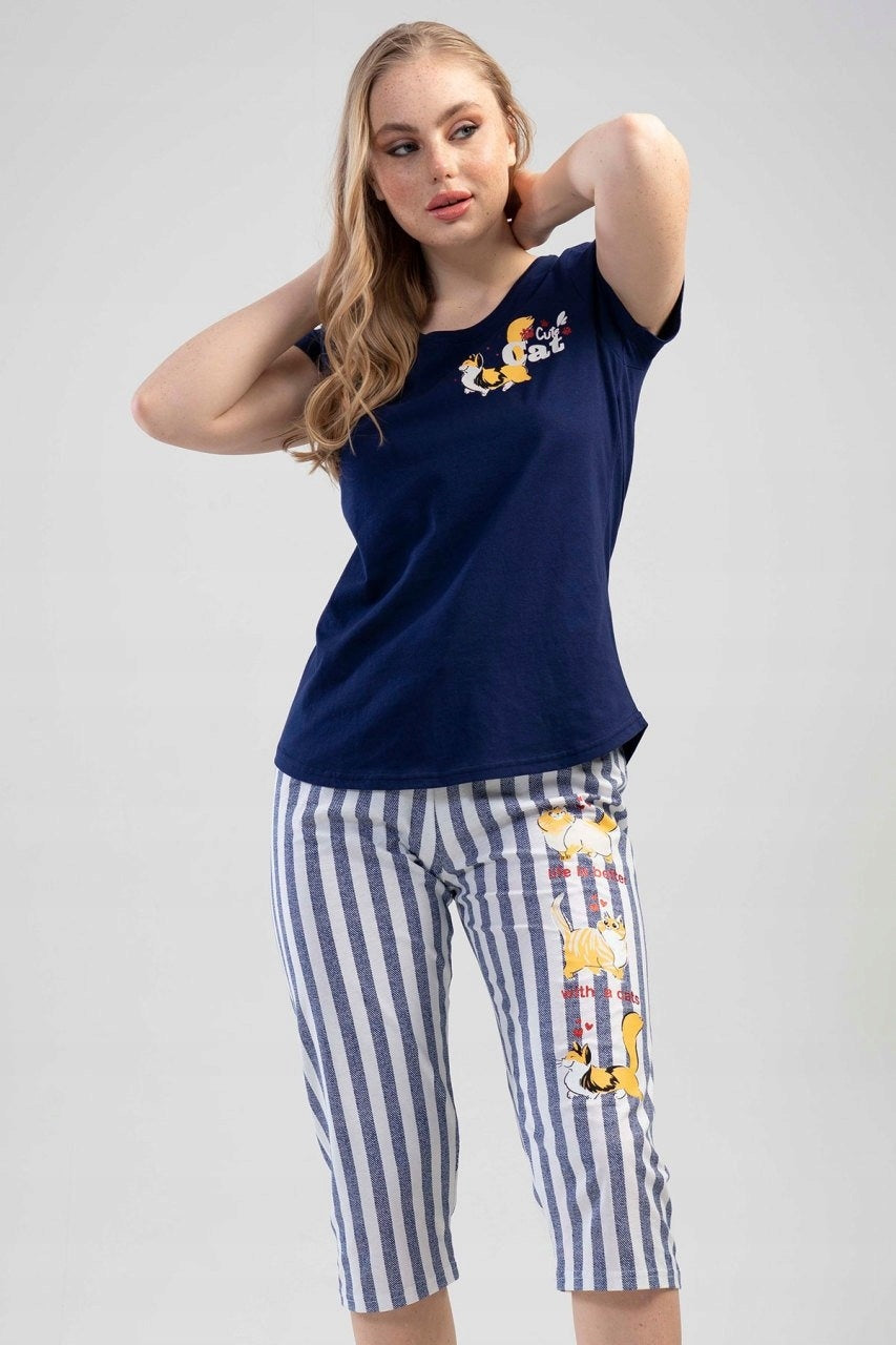 Piżama nocna, z krótkimi rękawami i ze spodniami za kolano