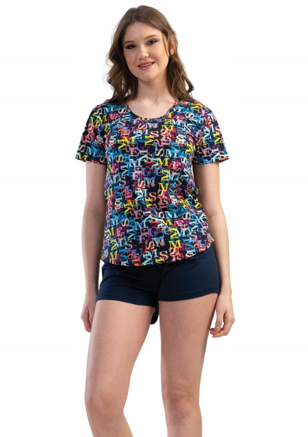 Piżama Damska Vienetta, Colorful M's, Granatowy, r. S-XL