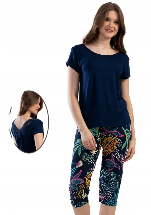 Piżama Damska Vienetta, Flower Night, Granatowa, r. M-XXL
