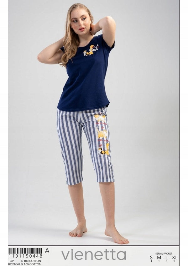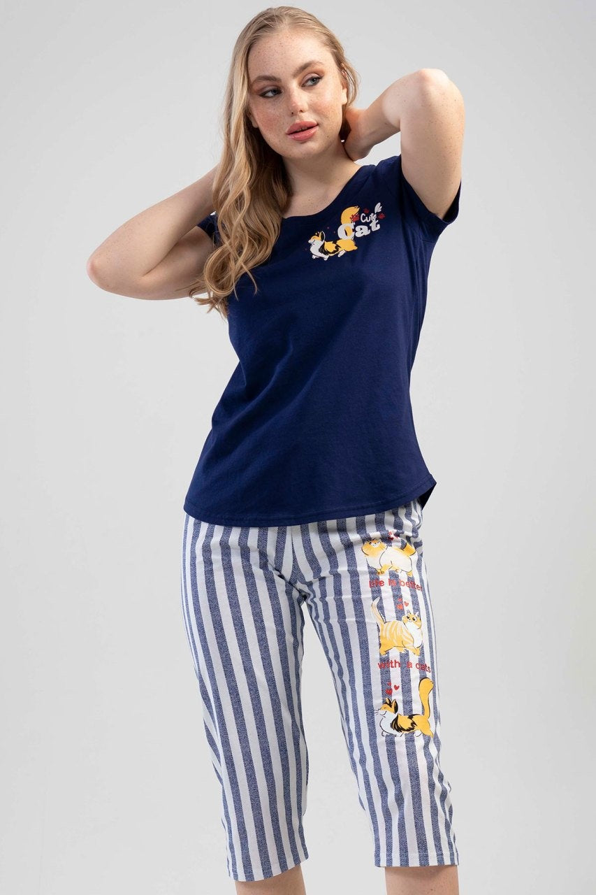 Piżama nocna, z krótkimi rękawami i ze spodniami za kolano