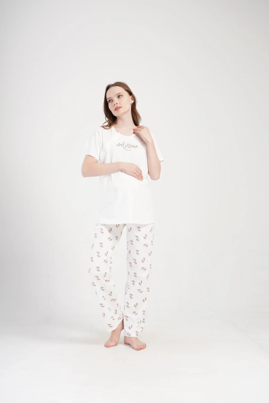 Piżama Damska do karmienia Vienetta Welcome, Biały, r. S-XL