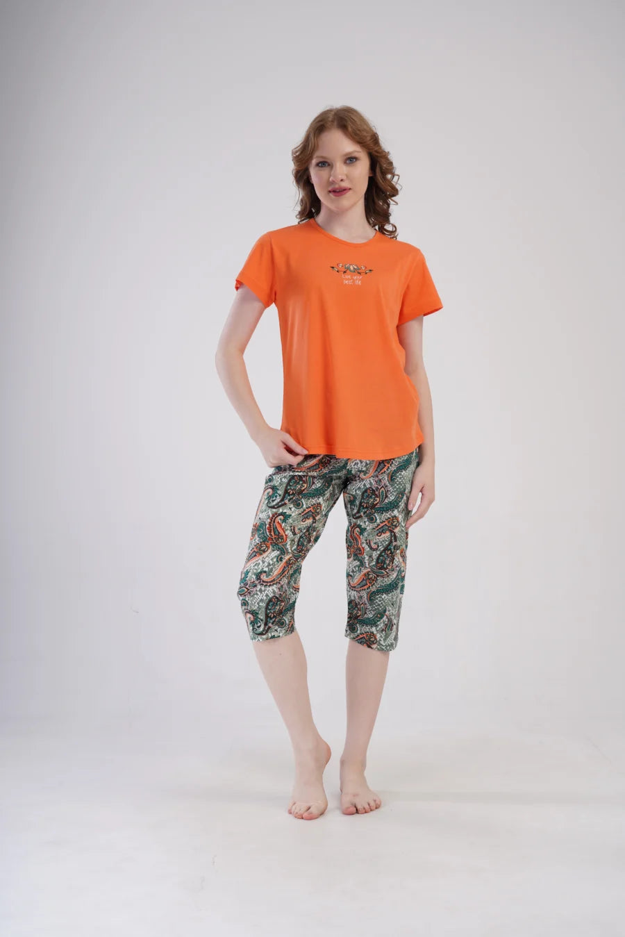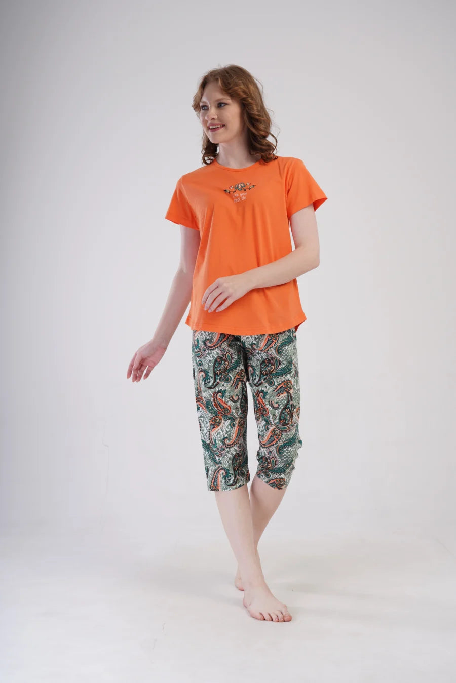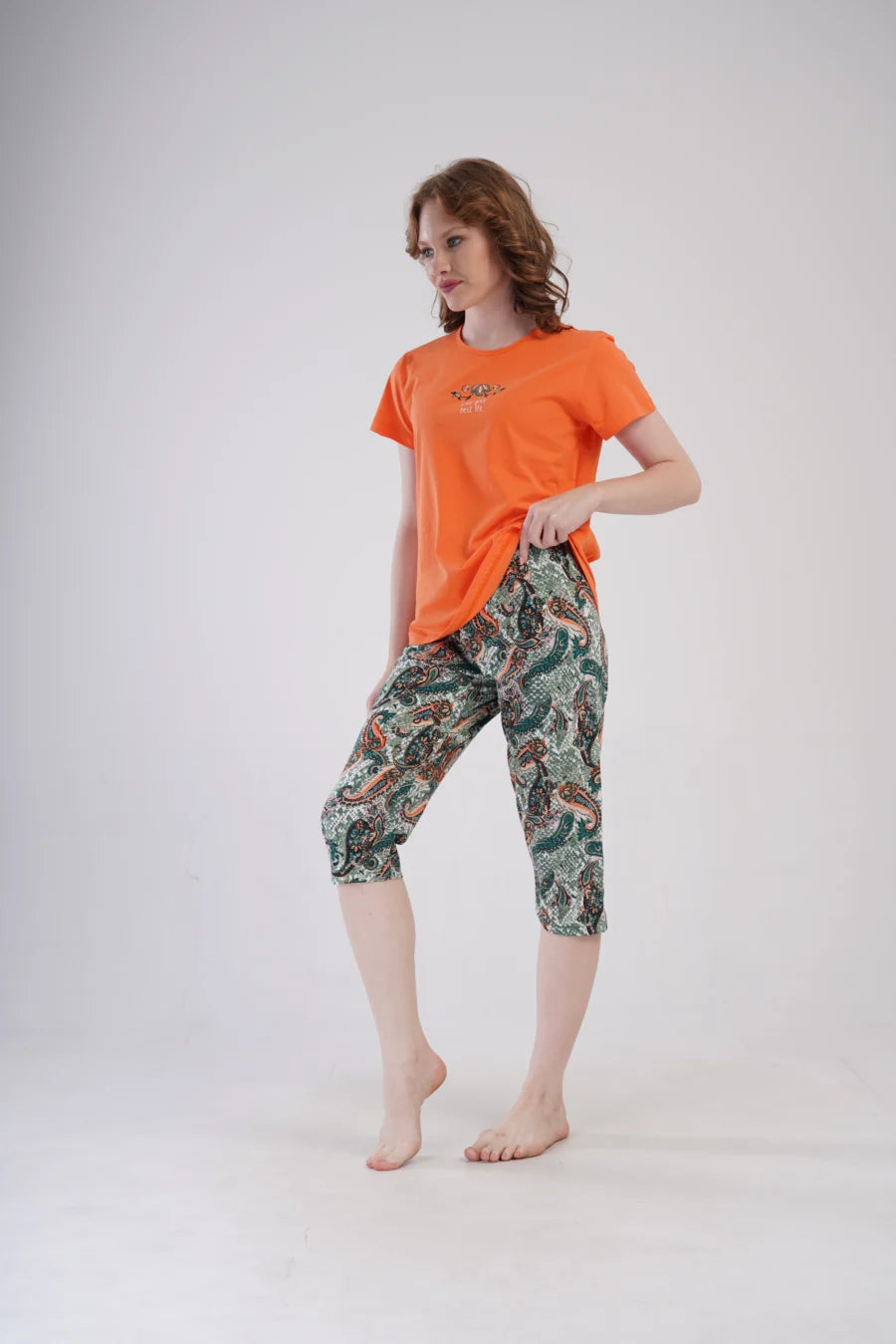 Piżama nocna, z krótkim rękawem i spodniami za kolano