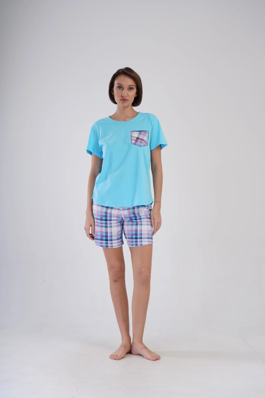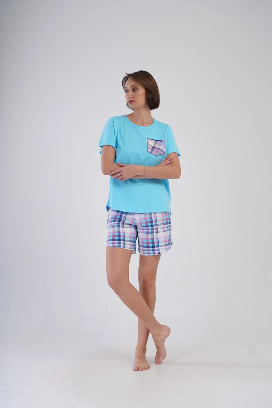 Piżama Damska Vienetta Blue and Pink, Niebieski, r. 1XL-4XL