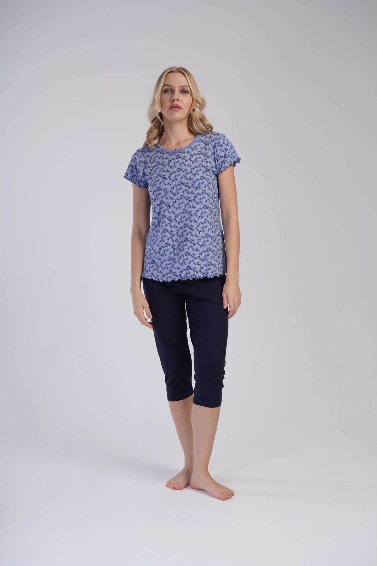 Piżama nocna, z krótkim rękawem i spodniami za kolano