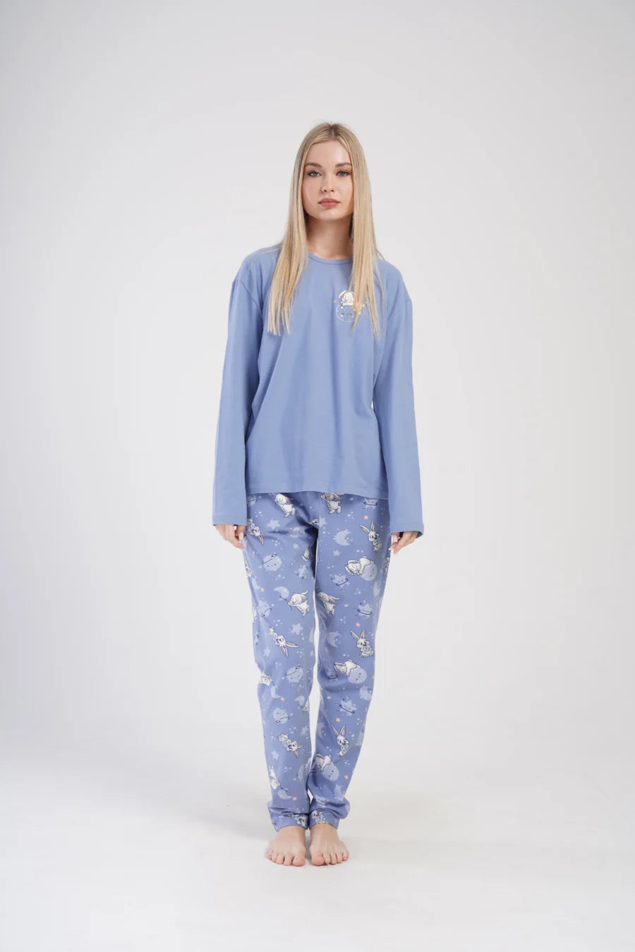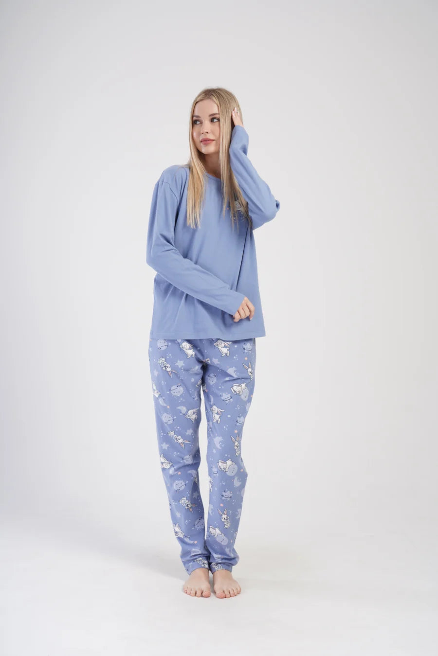 Piżama Damska Vienetta Bunny hop, Niebieski, r. 1XL-3XL