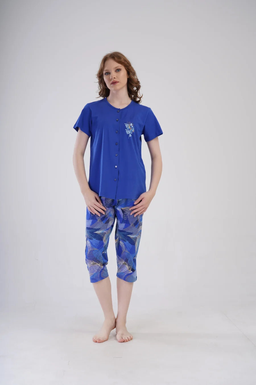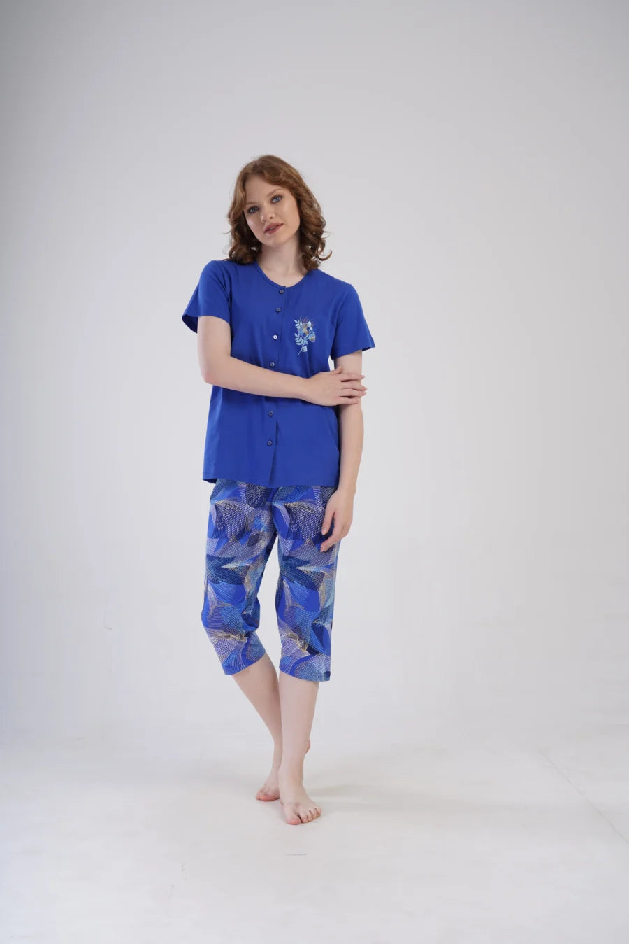 Piżama Damska Vienetta Cozy Flowers, Granatowy, r. 1XL-4XL