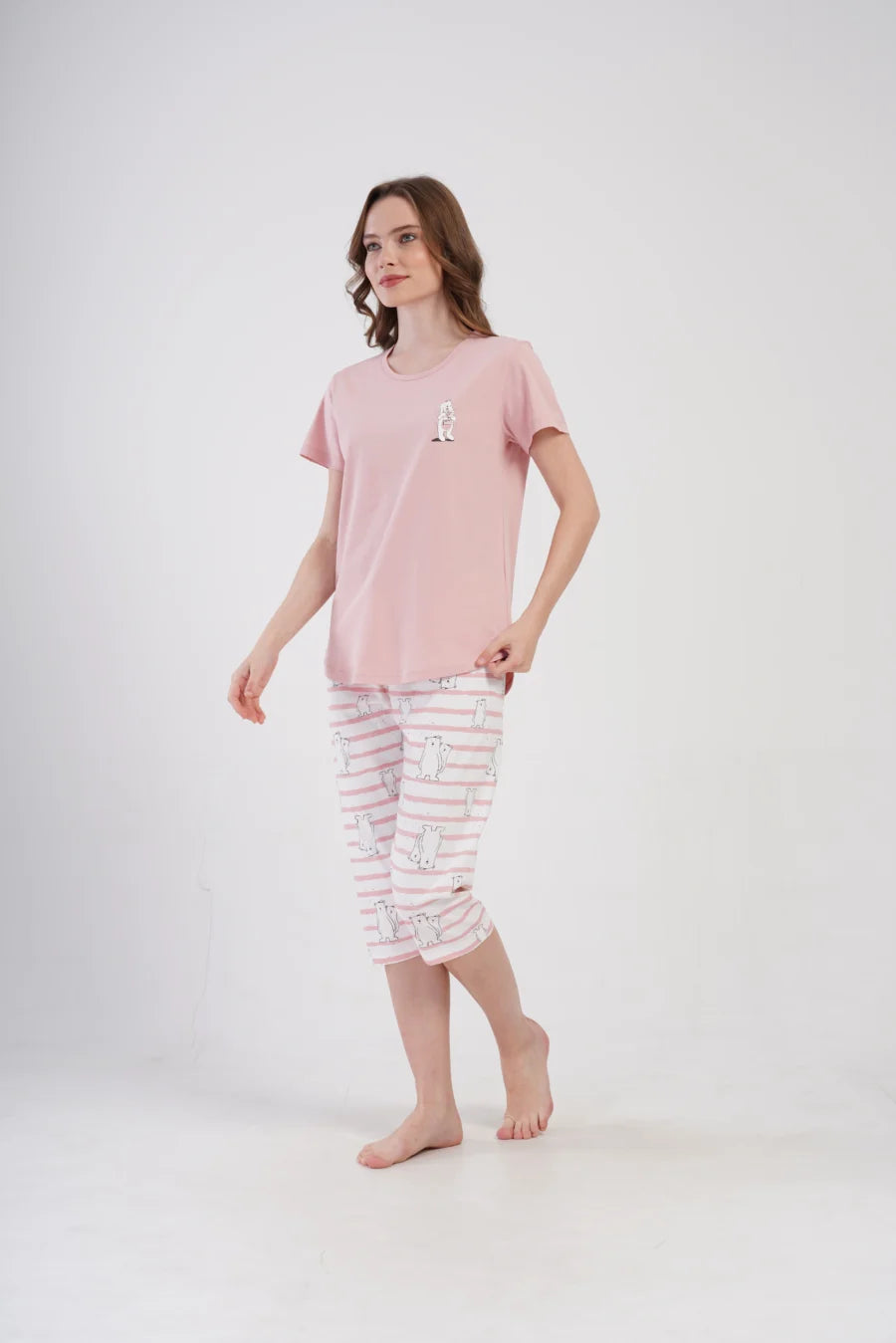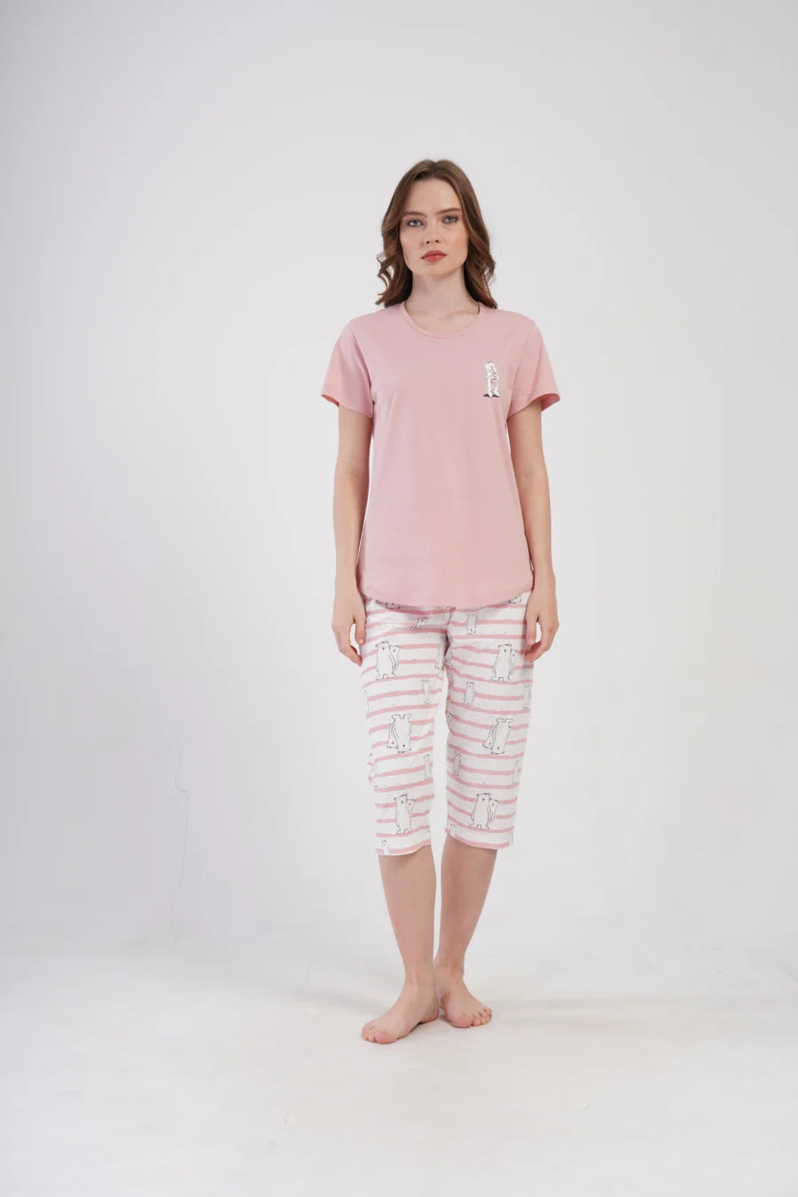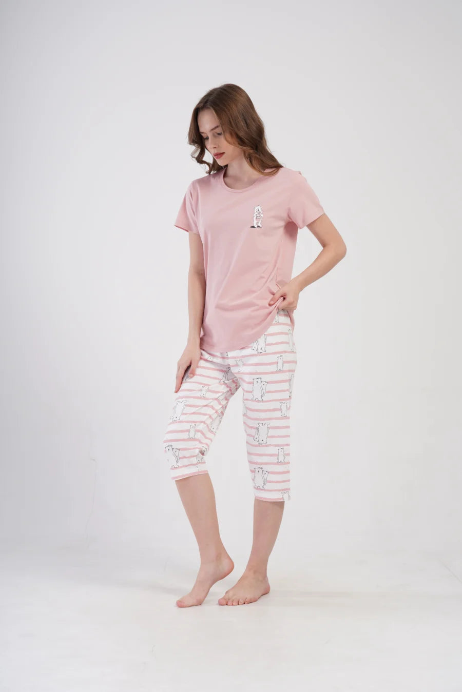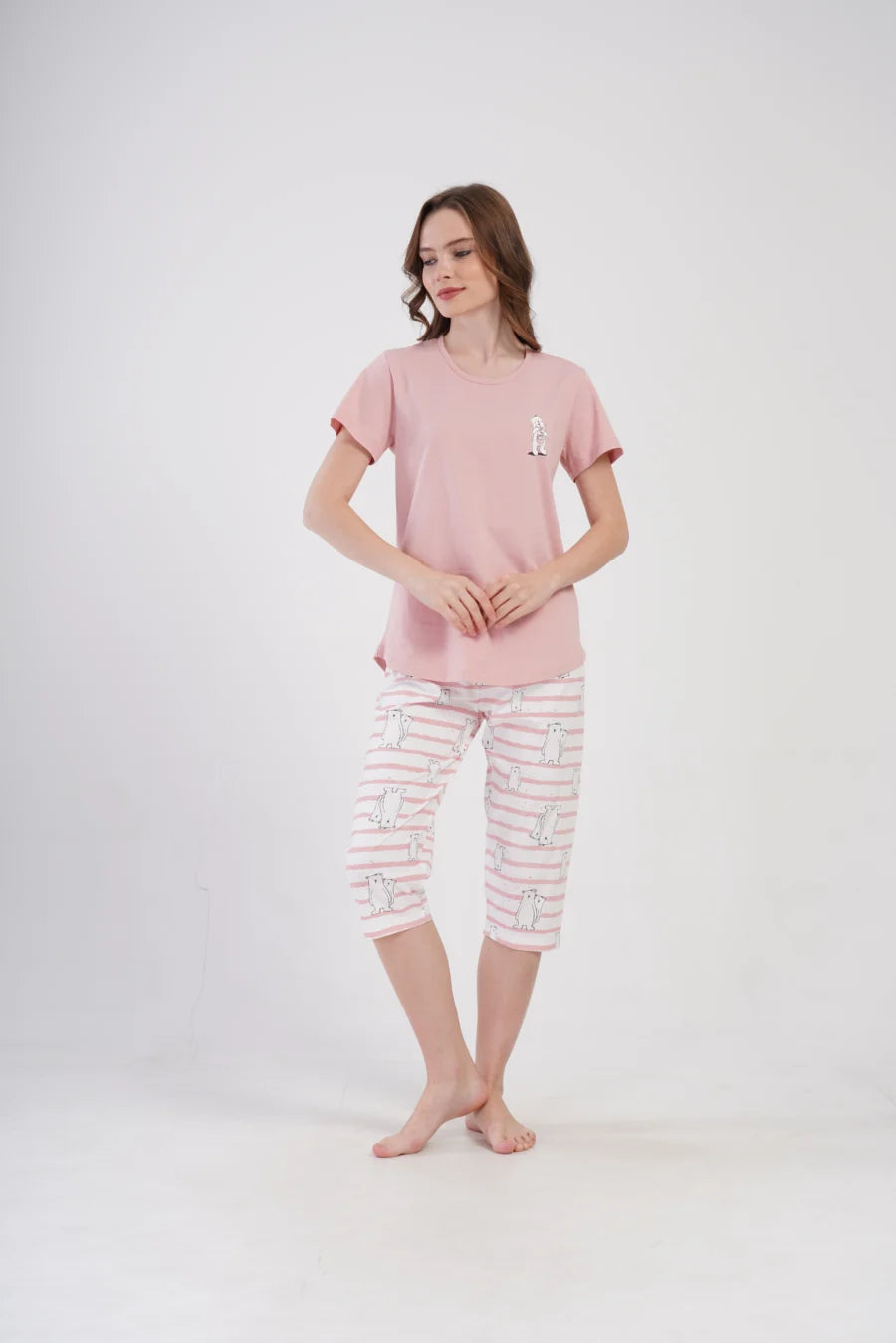 Piżama nocna, z krótkim rękawem i spodniami za kolano