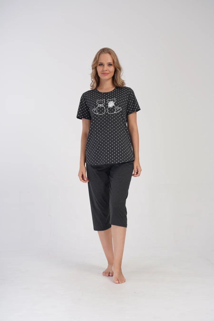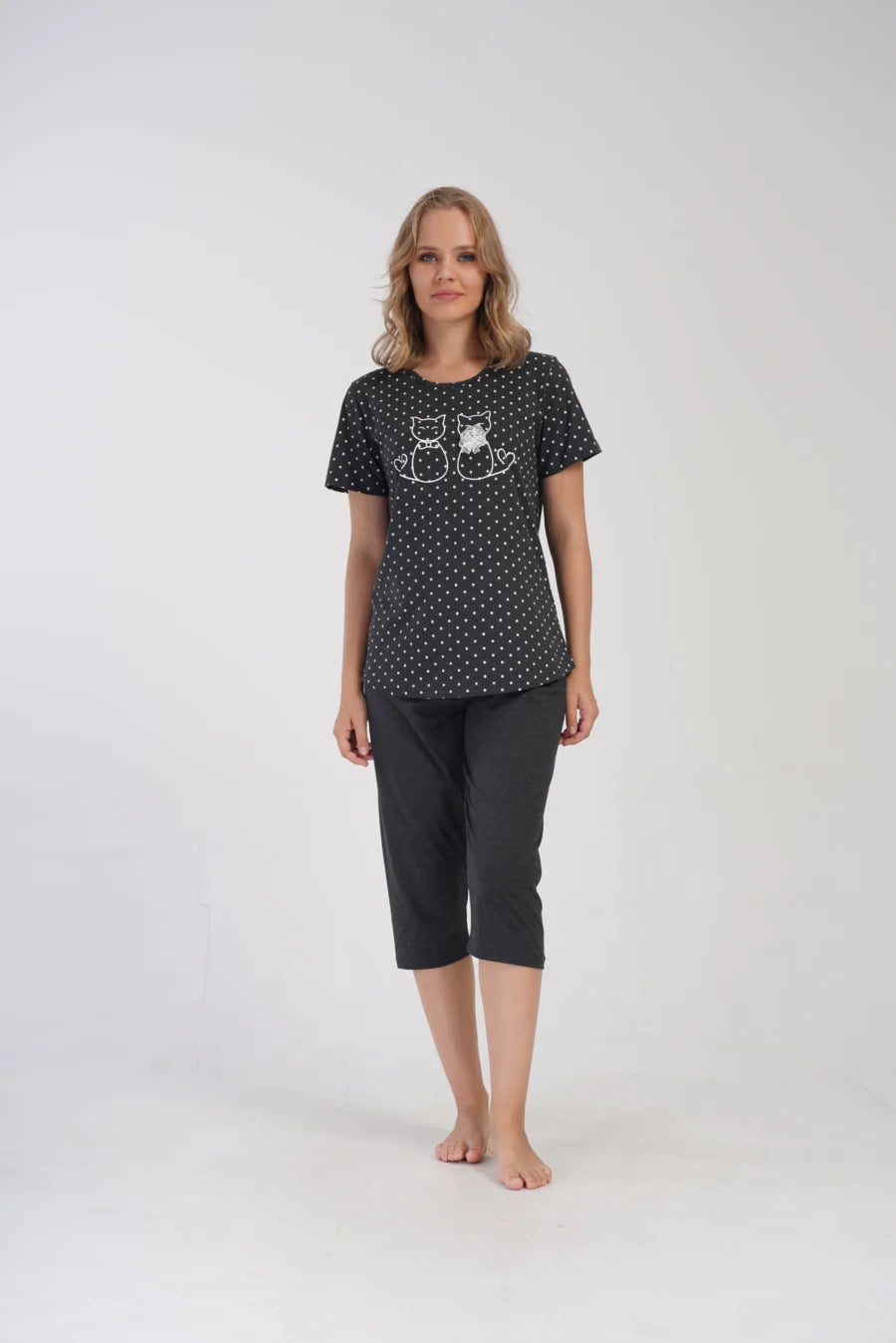 Piżama Damska Vienetta Cute Cats, Grafitowy, r. 1XL-4XL