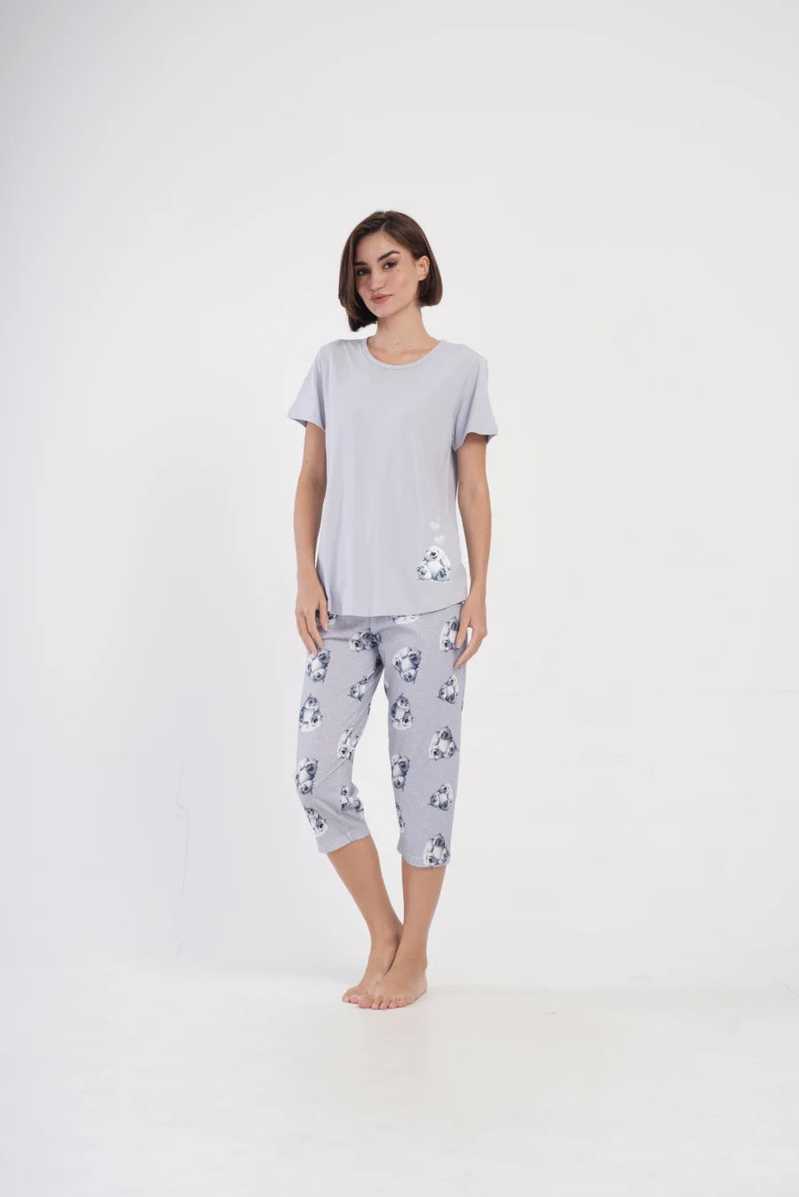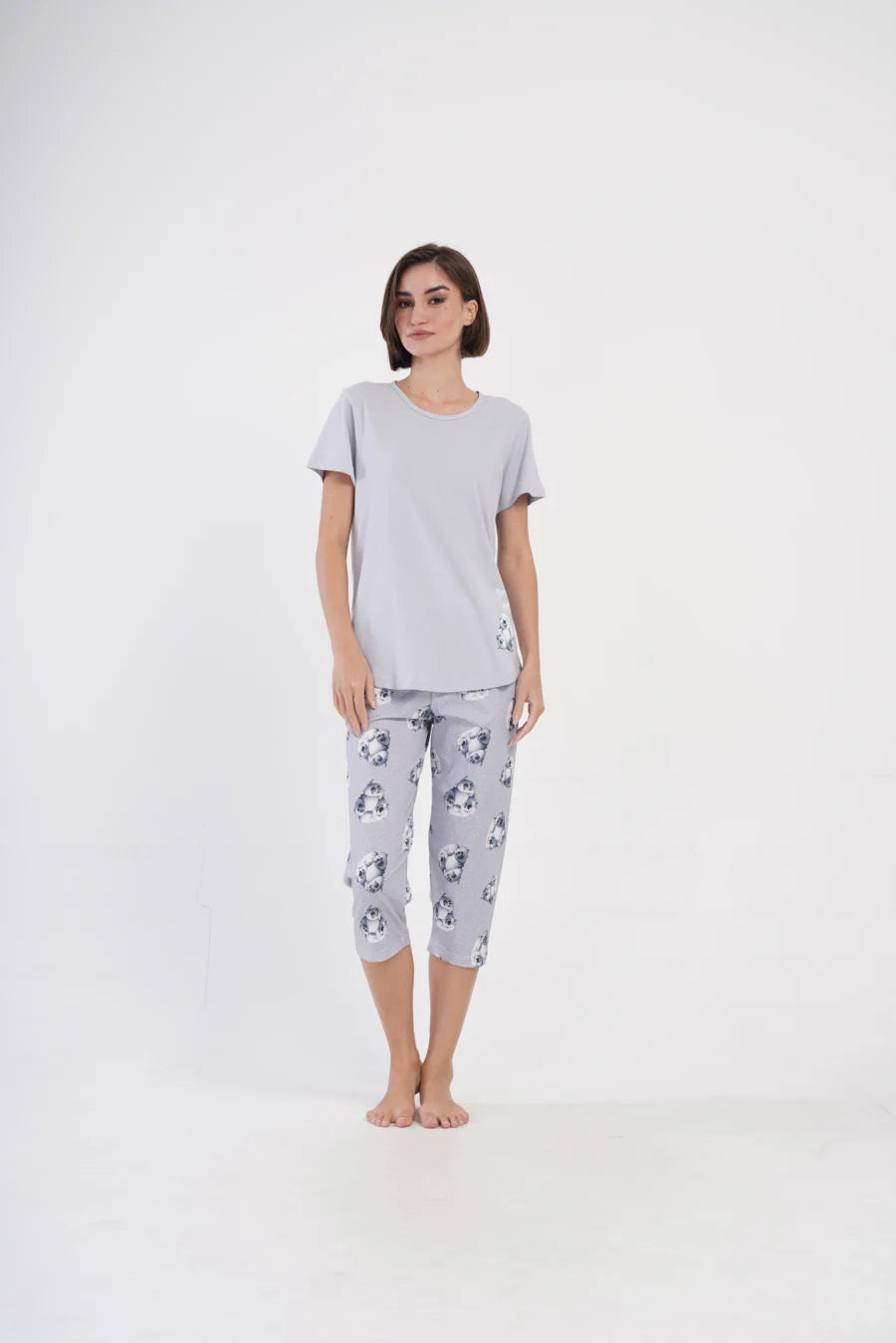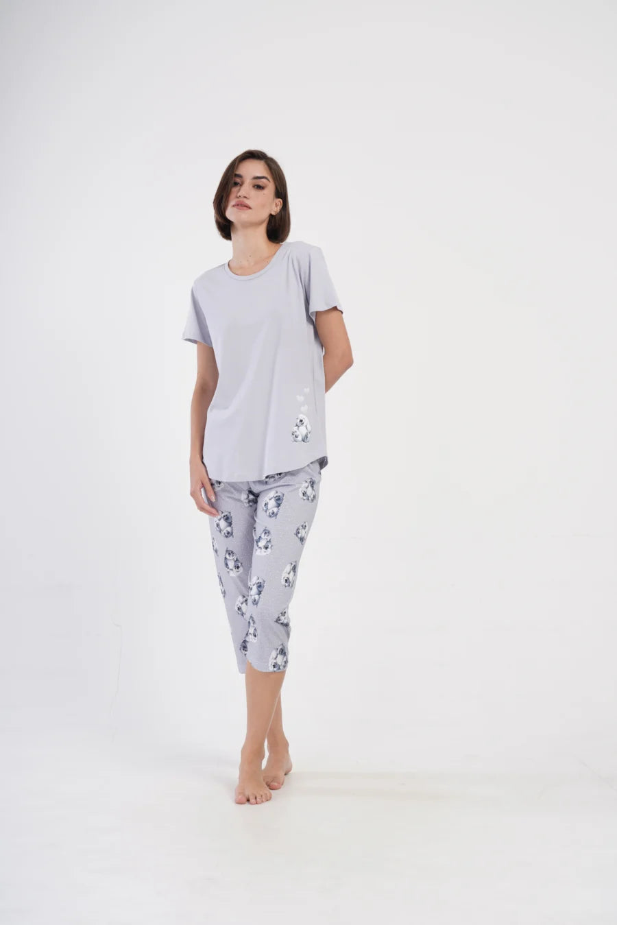 Piżama nocna, z krótkim rękawem i spodniami za kolano