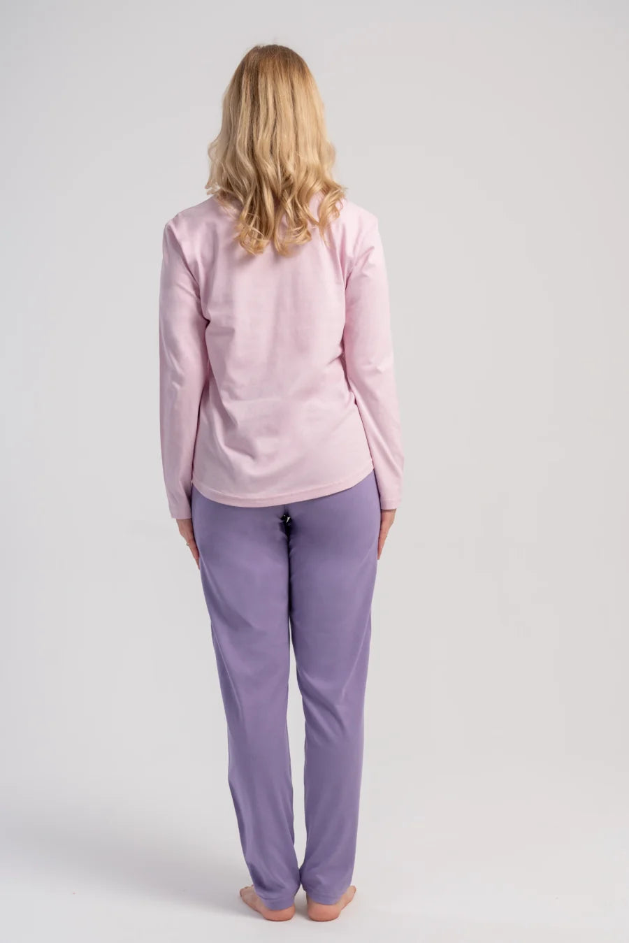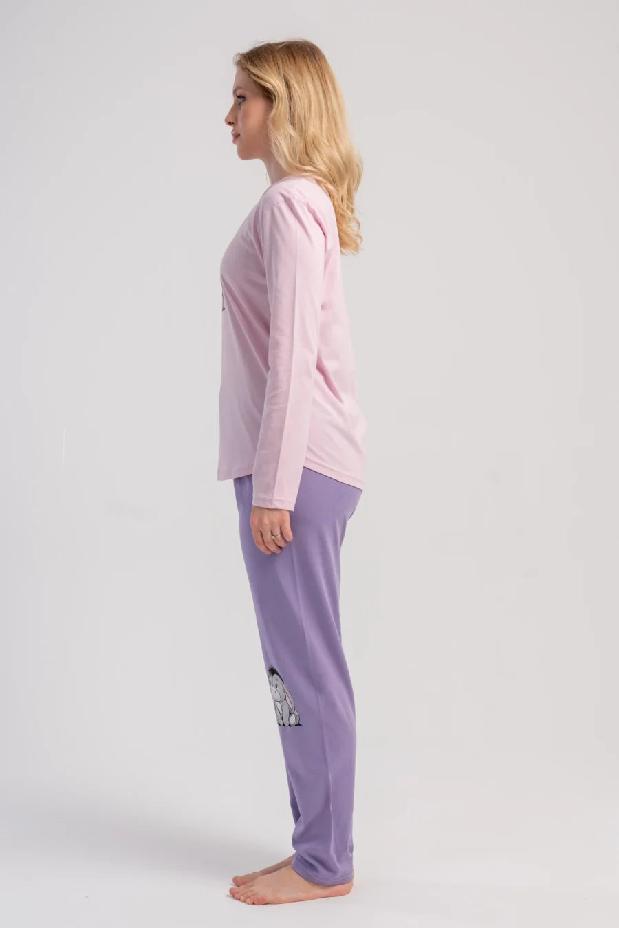 Urocza i komfortowa piżama damska bawełniana to idealna propozycja dla kobiet, które cenią połączenie wygody i słodkiego designu. Bluzka w kolorze jasnoróżowym ozdobiona jest nadrukiem sympatycznego osiołka i delikatnego motylka, co nadaje jej dziewczęcego uroku.