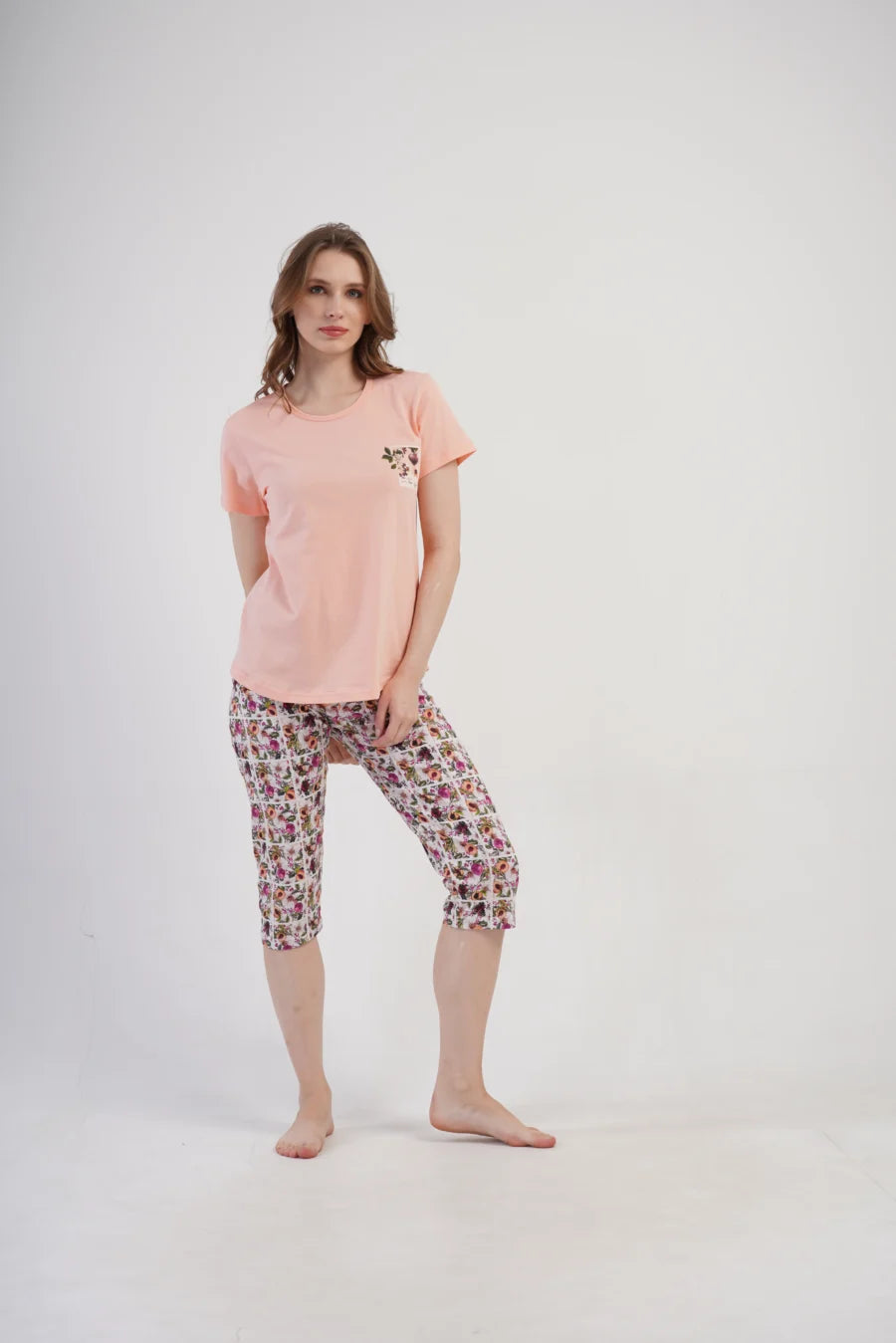 Piżama nocna, z krótkim rękawem i spodniami za kolano