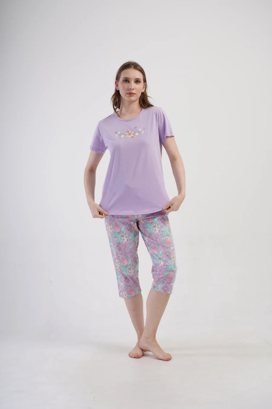 Piżama Damska Vienetta Flowers, Fioletowy, r. 5XL-7XL