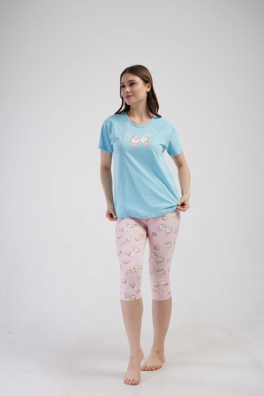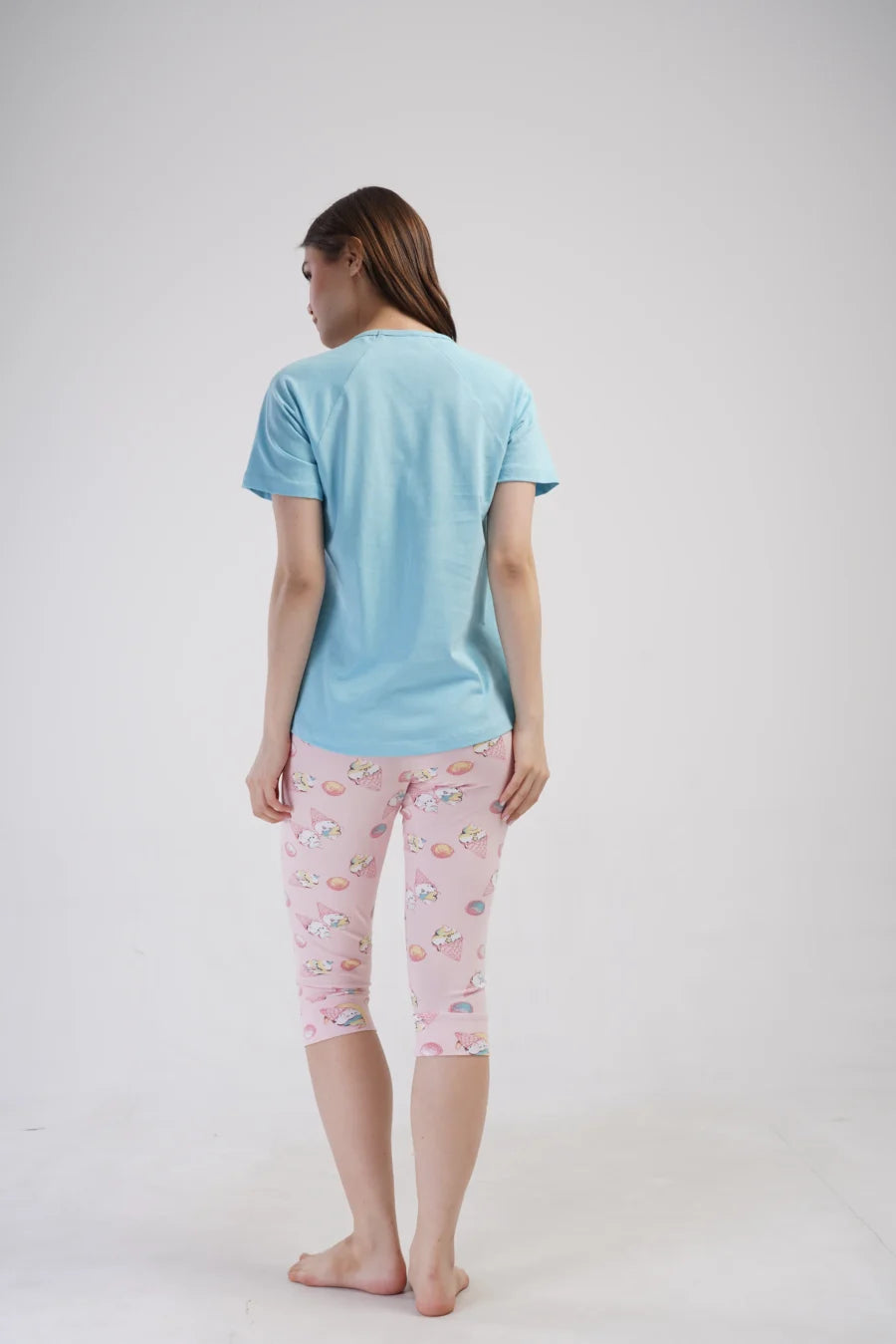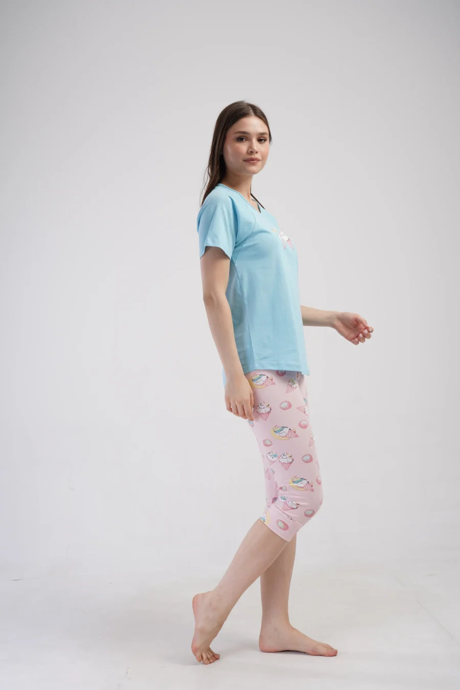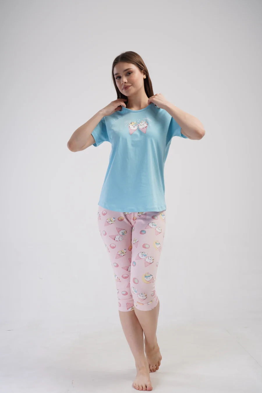 Piżama nocna, z krótkim rękawem i spodniami za kolano