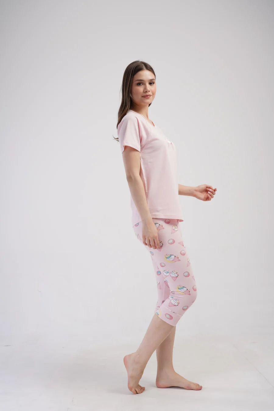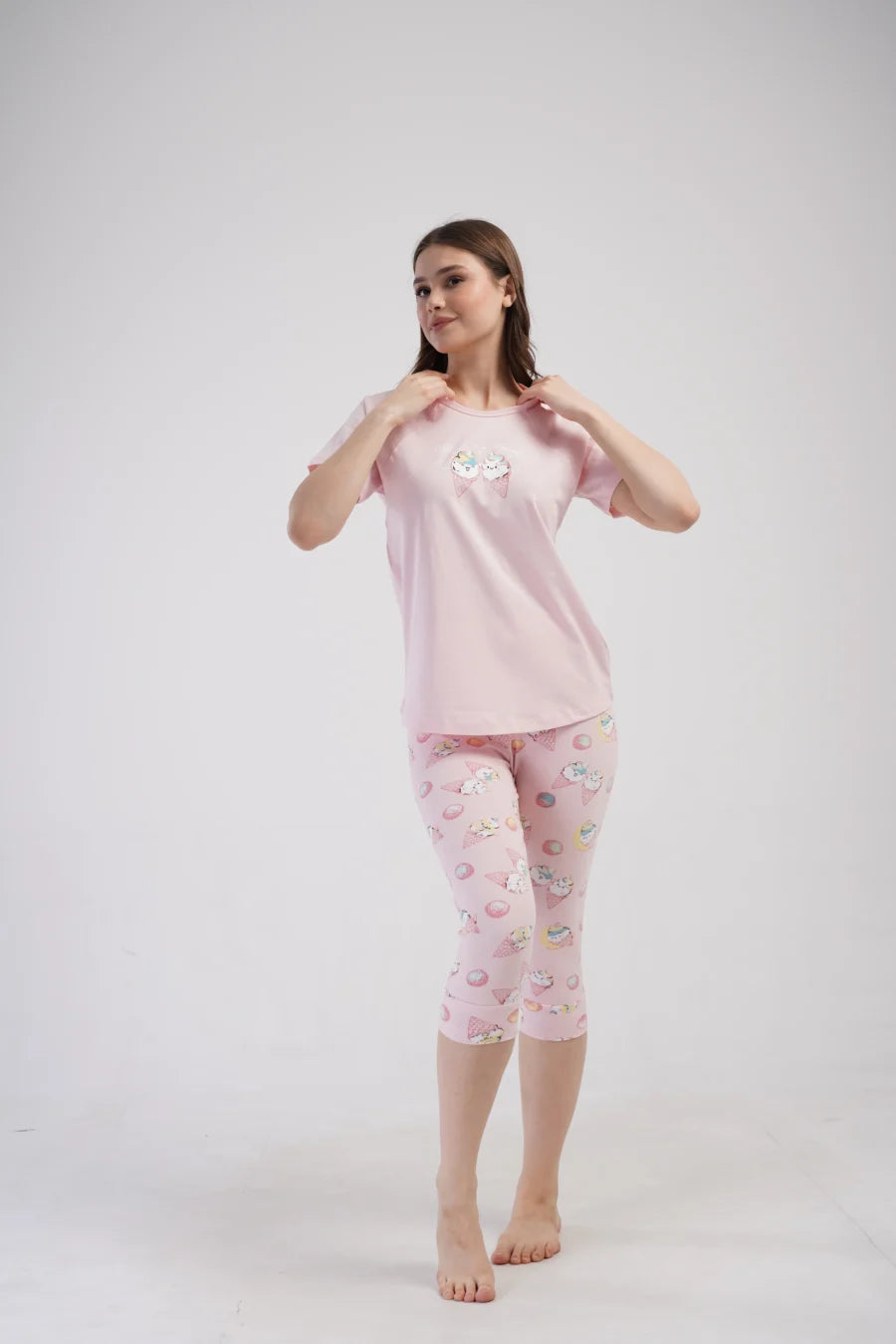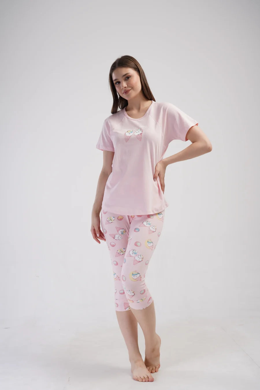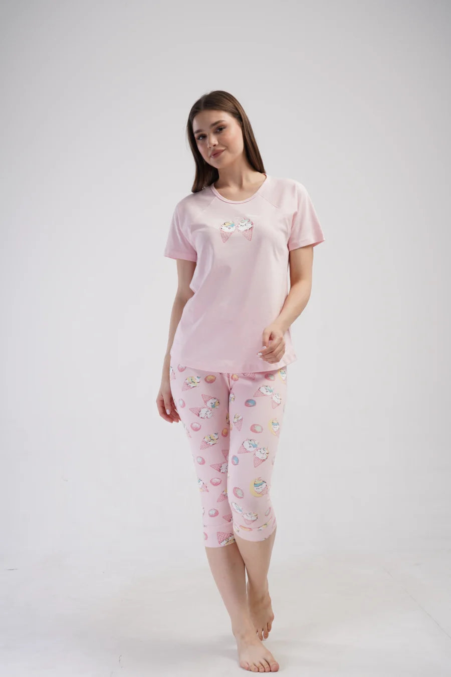 Piżama nocna, z krótkim rękawem i spodniami za kolano