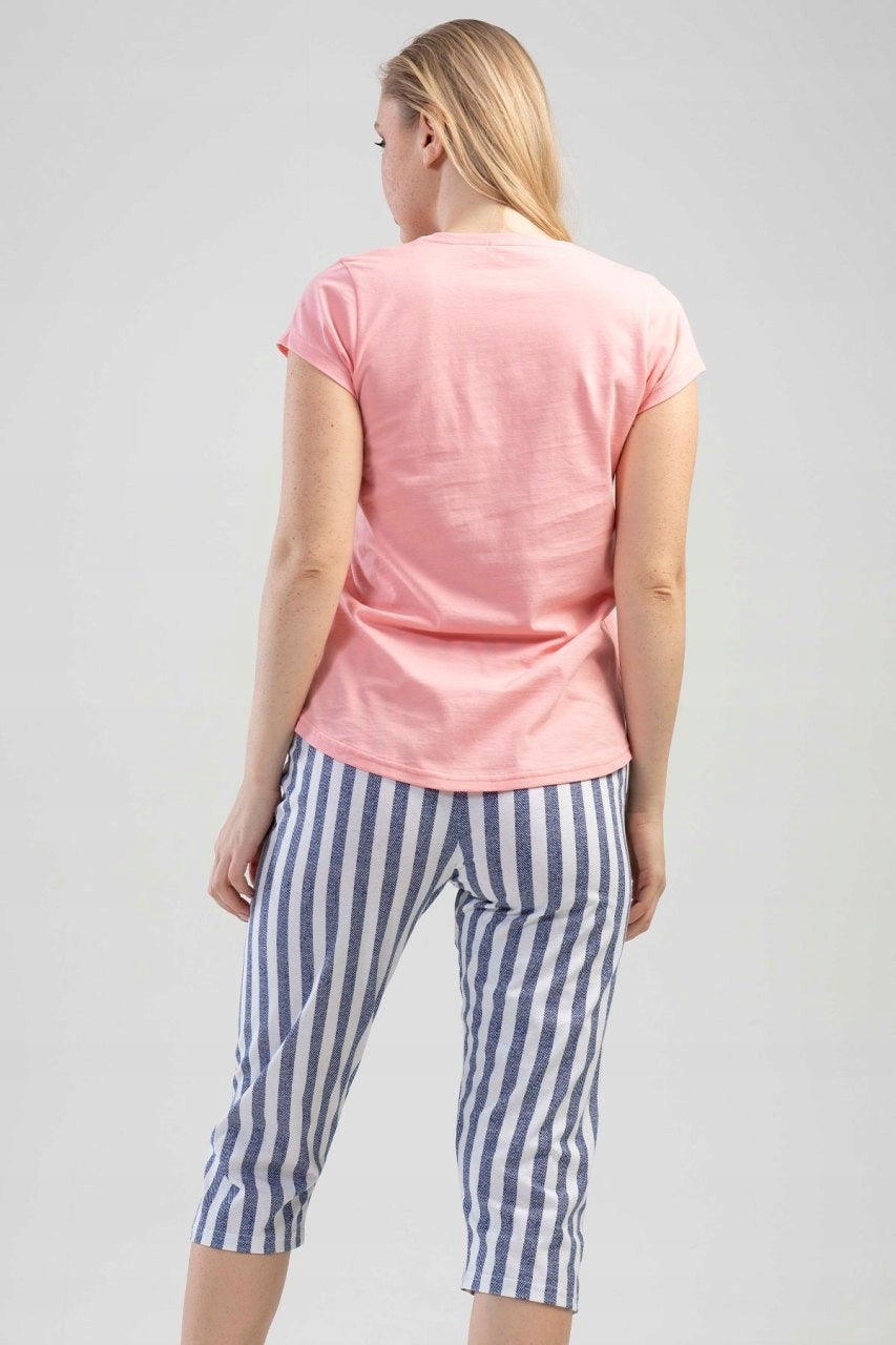 KOLOR: Bluzka: Różowa Spodnie: Biało-niebieskie paski SKŁAD MATERIAŁU: 100% Bawełna PRODUCENT: Vienetta (1101150448) INNEGO ROZMIARU LUB WZORU? SPRAWDŹ POZOSTAŁE NASZE AUKCJE! Piżama nocna, z krótkimi rękawami i ze spodniami za kolano spodnie mają w pasie gumkę i sznurek ułatwiający regulacje Spodnie i bluzka proste Jest przyjemna i miła w dotyku Bardzo wygodna i komfortowa w użytkowaniu. Wykonana z wysokiej jakości materiału. Modny, nowoczesny krój zadowoli najbardziej wymagających. Idealnie nada się na prezent dla bliskiej Ci osoby.   Piżama polecana dla kobiet i dziewcząt . Idealnie dopasowuje się do sylwetki dzięki wygodnemu krojowi. Materiał z którego została wykonana jest delikatny i nie podrażnia skóry. Jej uniwersalny i elegancki wzór przypadnie do gustu każdej kobiecie. Bardzo wygodna i komfortowa w użytkowaniu.